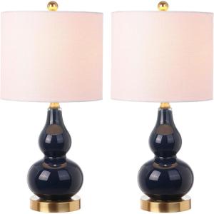 JONATHAN Y JYL1028C-SET2 Anya 20.5″ Mini Glass Lamp(Set of 2) Transitional,Glam,Midcentury for Bedroom, Living Room, Office, College Dorm, Coffee Table, Bookcase, Silver, 2 Piece(Navy)