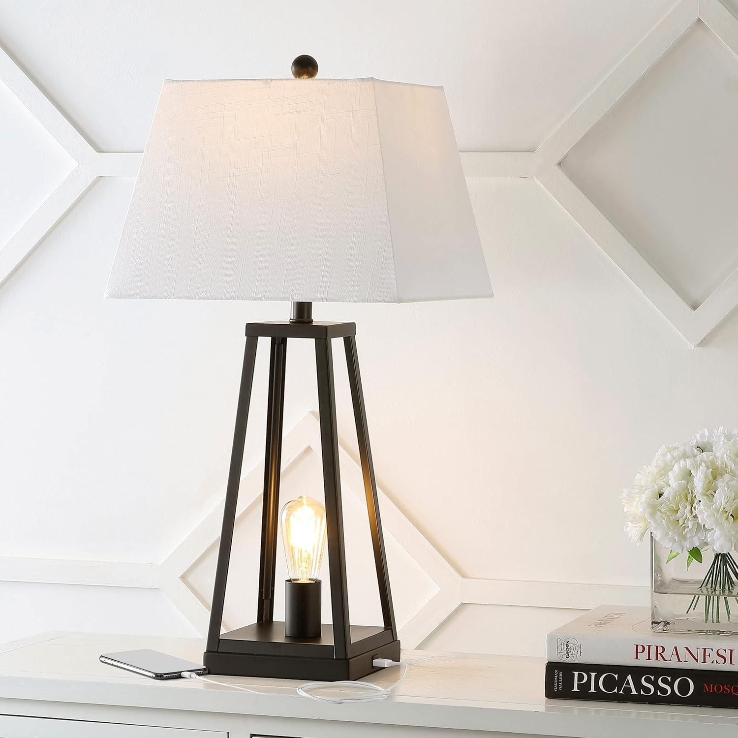 JONATHAN Y JYL1111A Hank 27″ 2-Light Industrial Farmhouse Iron LED Table Lamp with USB Charging Port Contemporary Bedside Desk Lamp for Bedroom Living Room Office, Oil Rubbed Bronze