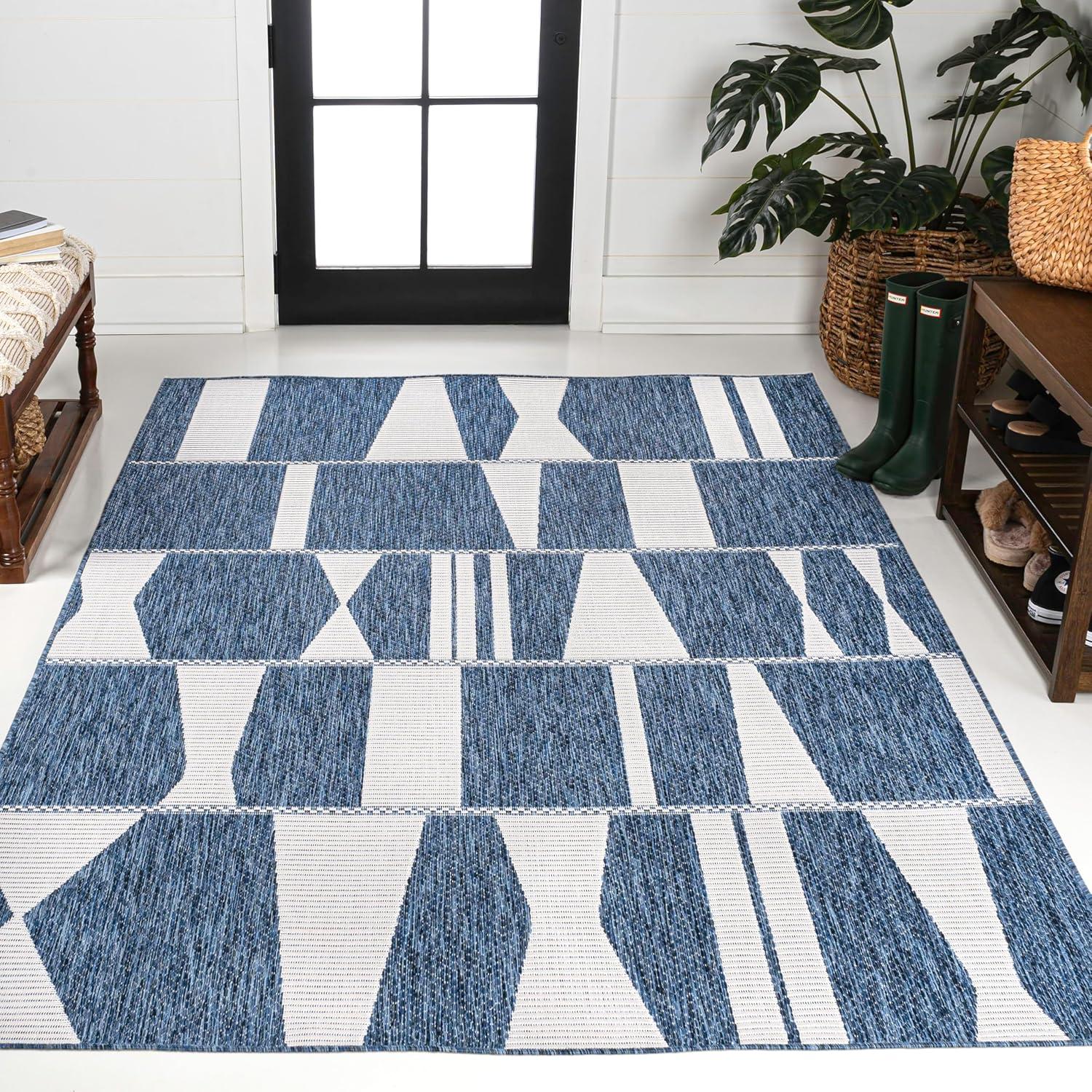 JONATHAN Y Abstract Two-Tone Indoor Outdoor Area Rug 8X10 Navy/Cream, Lucian Modern Geometric for Backyard, Patio, Porch, Easy-Cleaning, High Traffic, Pet-Friendly, Non-Shedding (TSN303B-8)(Navy/Cream)