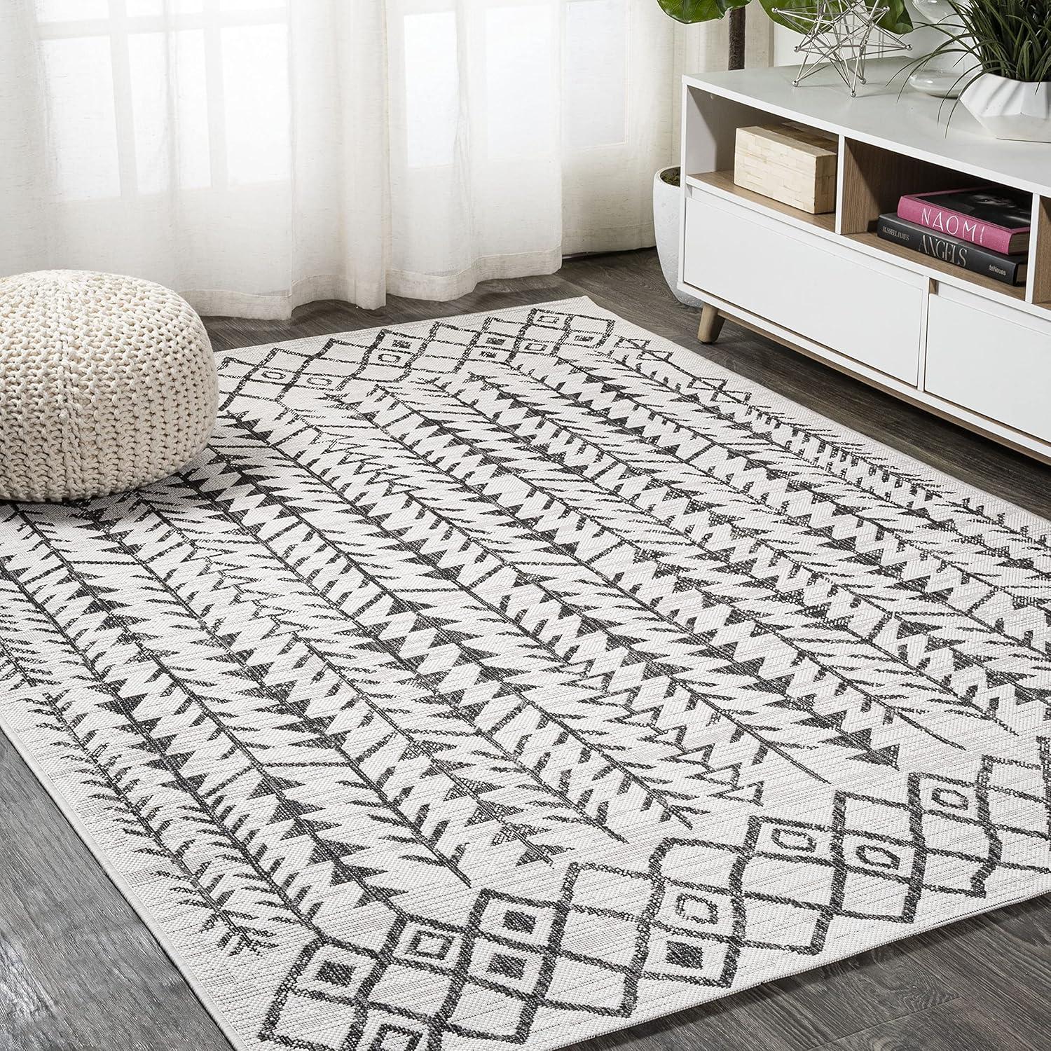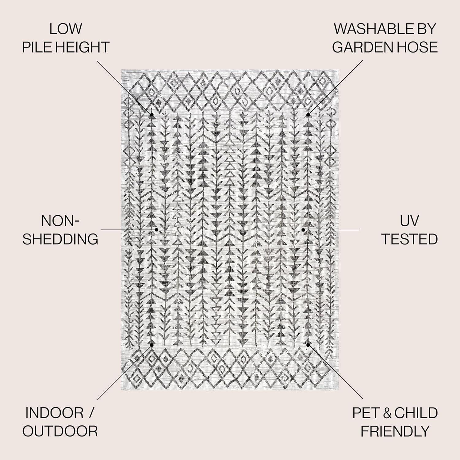 STAIN-RESISTANT AND PET-FRIENDLY: This rug is made from synthetic fibers that resist UV fading; The pet-friendly low-pile construction won’t accumulate dirt, and spills clean up easily; It’s been machine-woven so the rug fibers will stay put