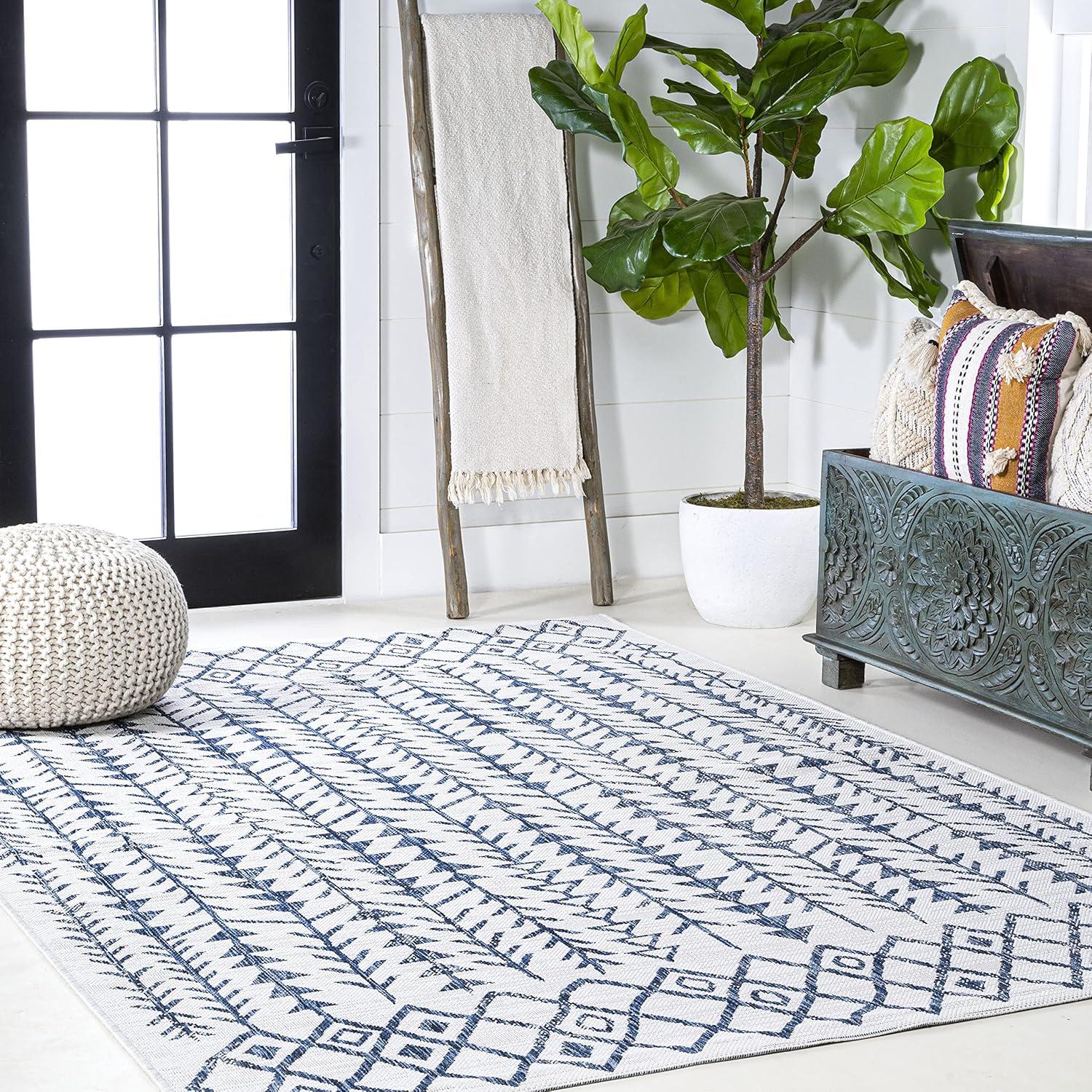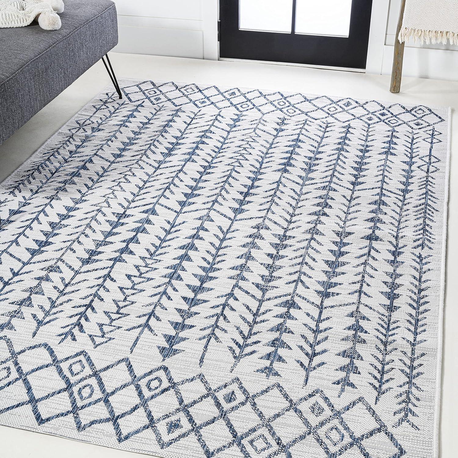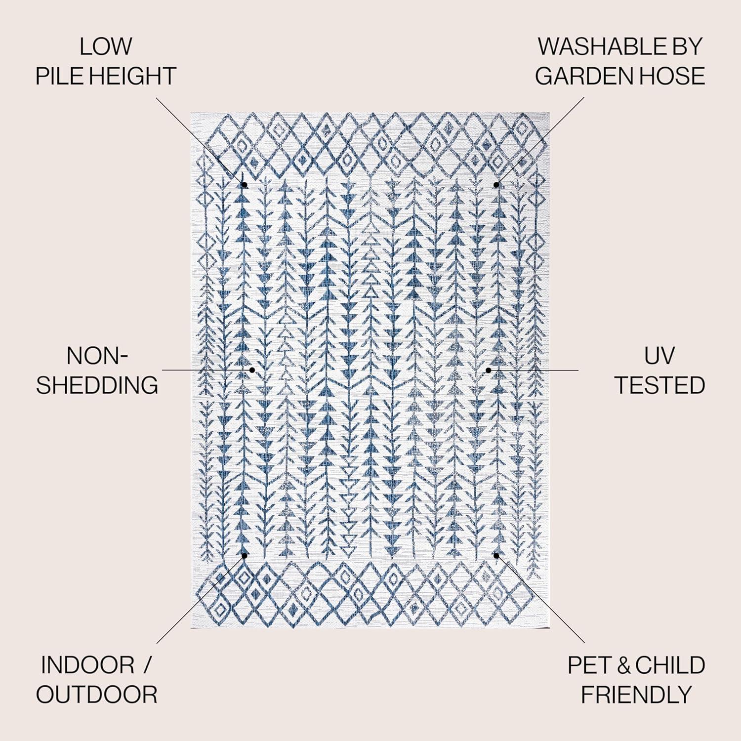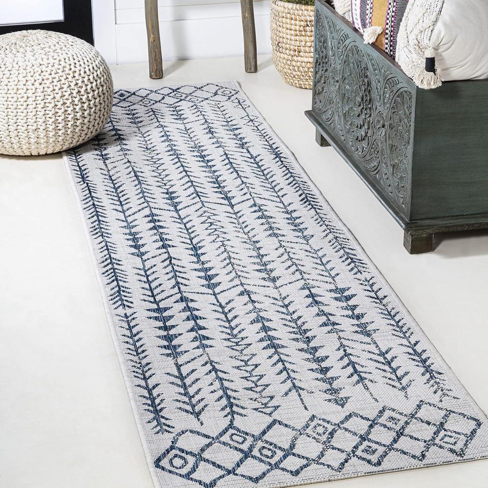 JONATHAN Y Bohemian Geometric Indoor Outdoor Runner Rug 2X8 Black/Ivory, Tokay for Backyard, Patio, Porch, Easy-Cleaning, High Traffic, Pet-Friendly, Non-Shedding (SMB132E-28)(Ivory/Blue)