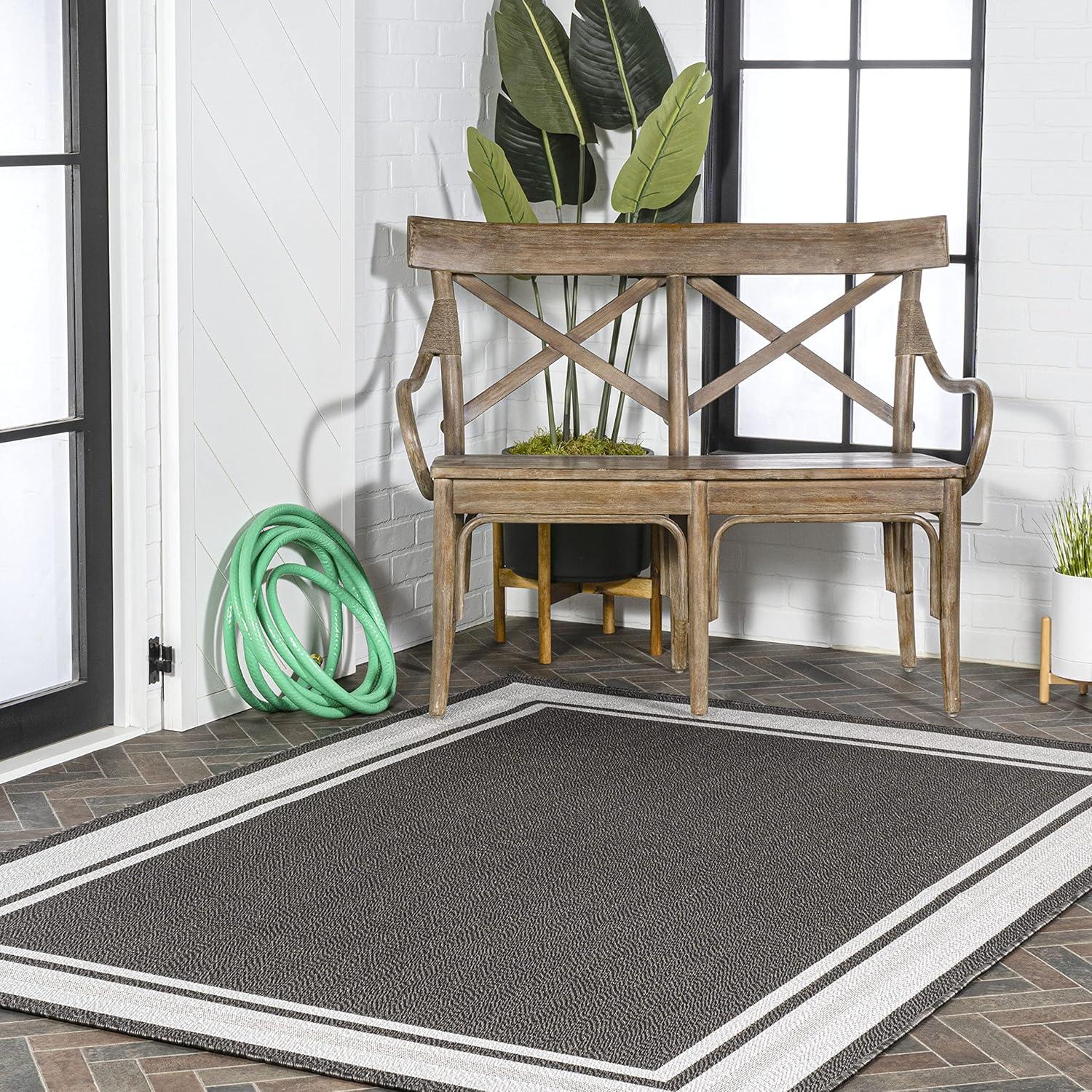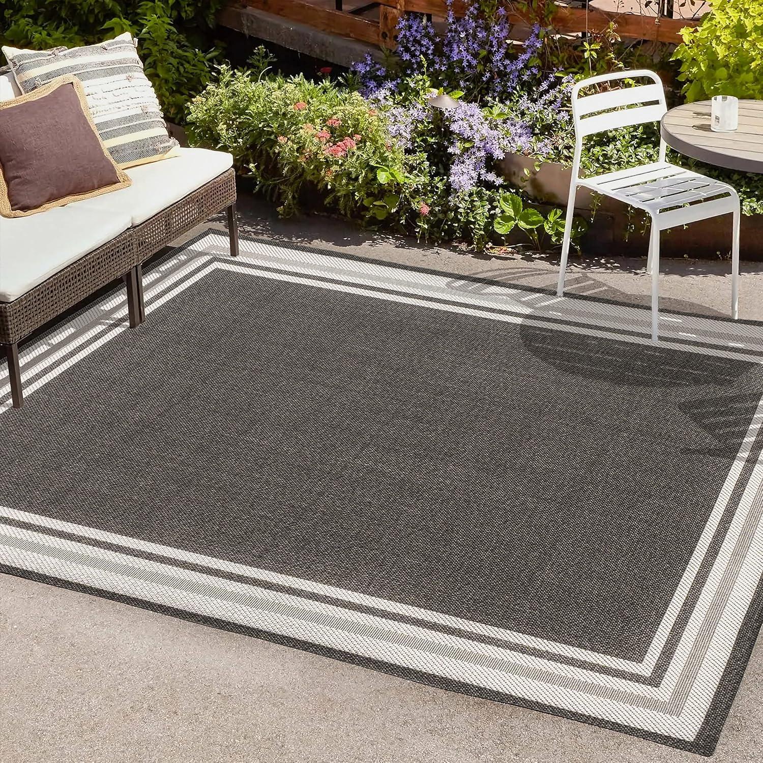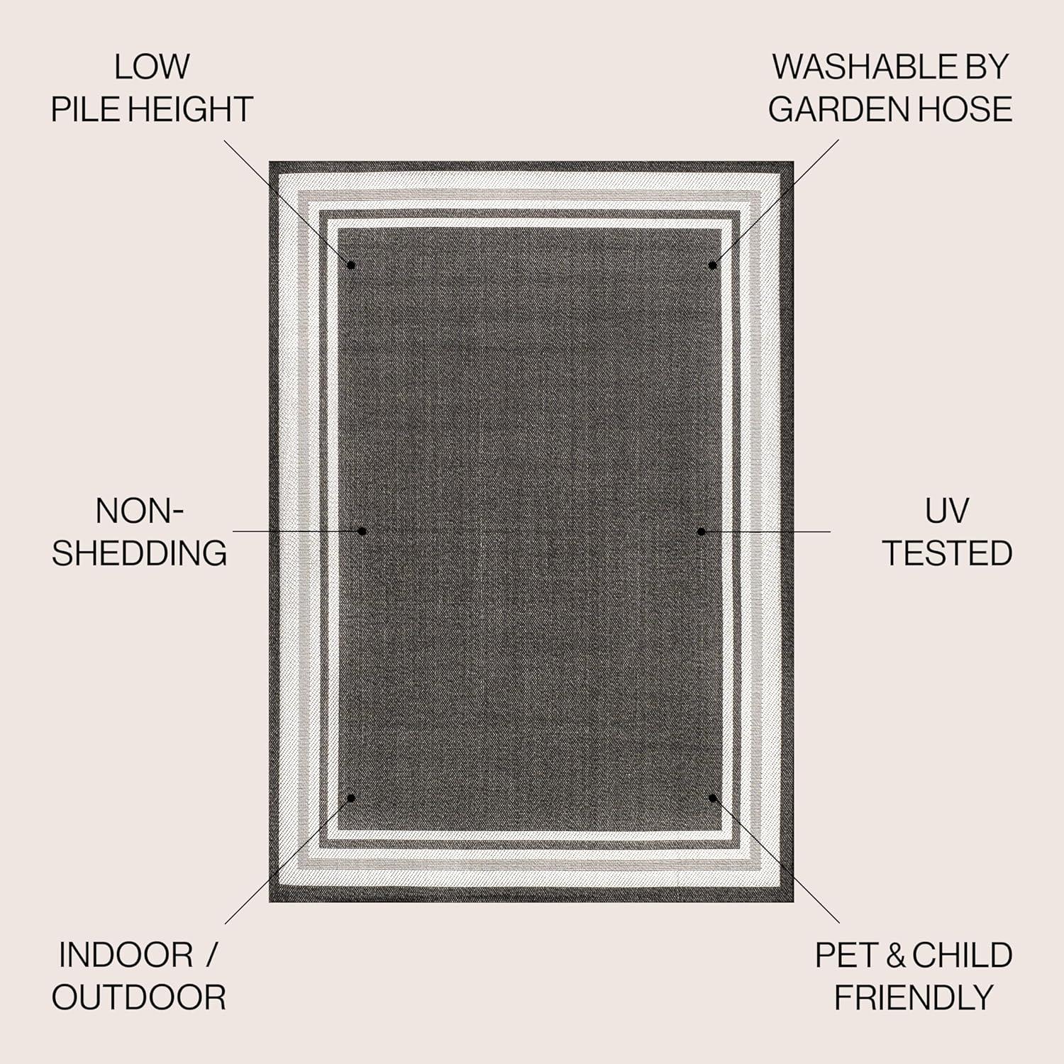 JONATHAN Y Border Stripe Indoor Outdoor Area Rug 8X10 Orange/Dark Gray, James Modern for Backyard, Patio, Porch, Easy-Cleaning, High Traffic, Pet-Friendly, Non-Shedding (SMB201A-8)(Black/Cream)