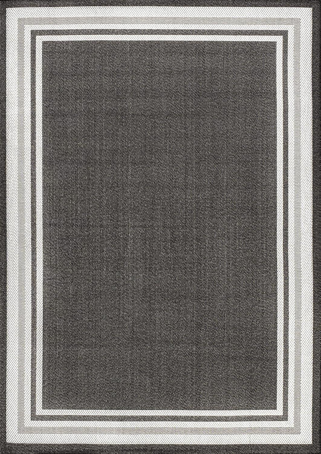 Inspired by the clean lines of modern design, our stripe border rug has a durable low pile. This versatile pattern is woven in contrasting colors for a low-key, minimalist look. Add graphic punch to your living room, dining room, bedroom, or porch with this easy-care, family-friendly rug.