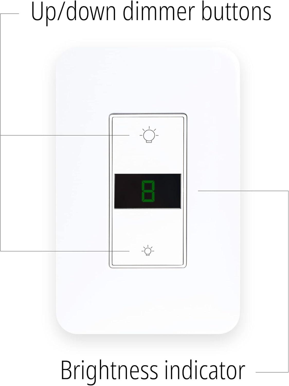 Home Automation & Manual Control: Schedule your lighting to adjust according to the time of day or the weather. Set the brightness for dining or watching a movie, or dim the lights before bedtime with a tap on your phone. The LED displays the exact brightness level; adjust lighting manually by pressing the Up or Down buttons, or switch on and off by pressing the LED button
