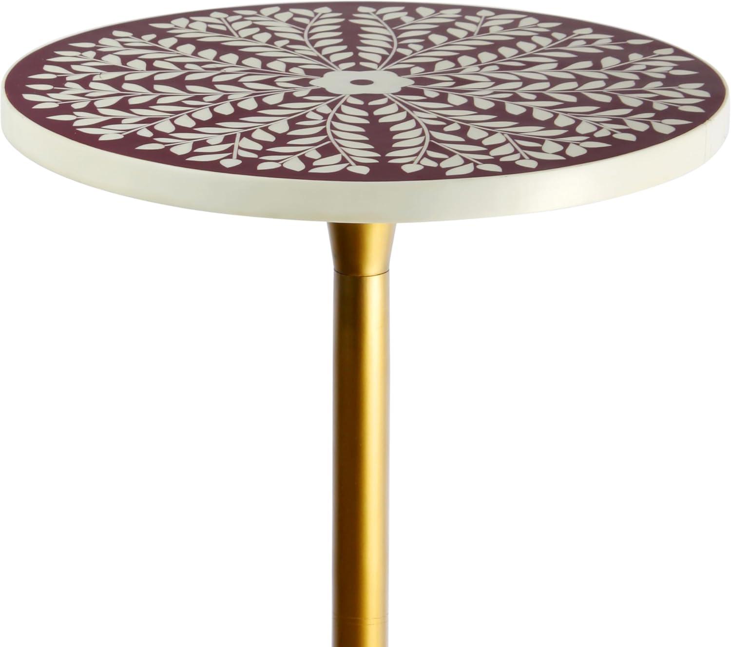 Show off your favorite plants or serve cocktails on our global-inspired pedestal stand. The modern design features an inlay resin top with a vine pattern and a sleek, sturdy metal base. This designer accent table is a chic addition to the living room, dining room or bedroom.