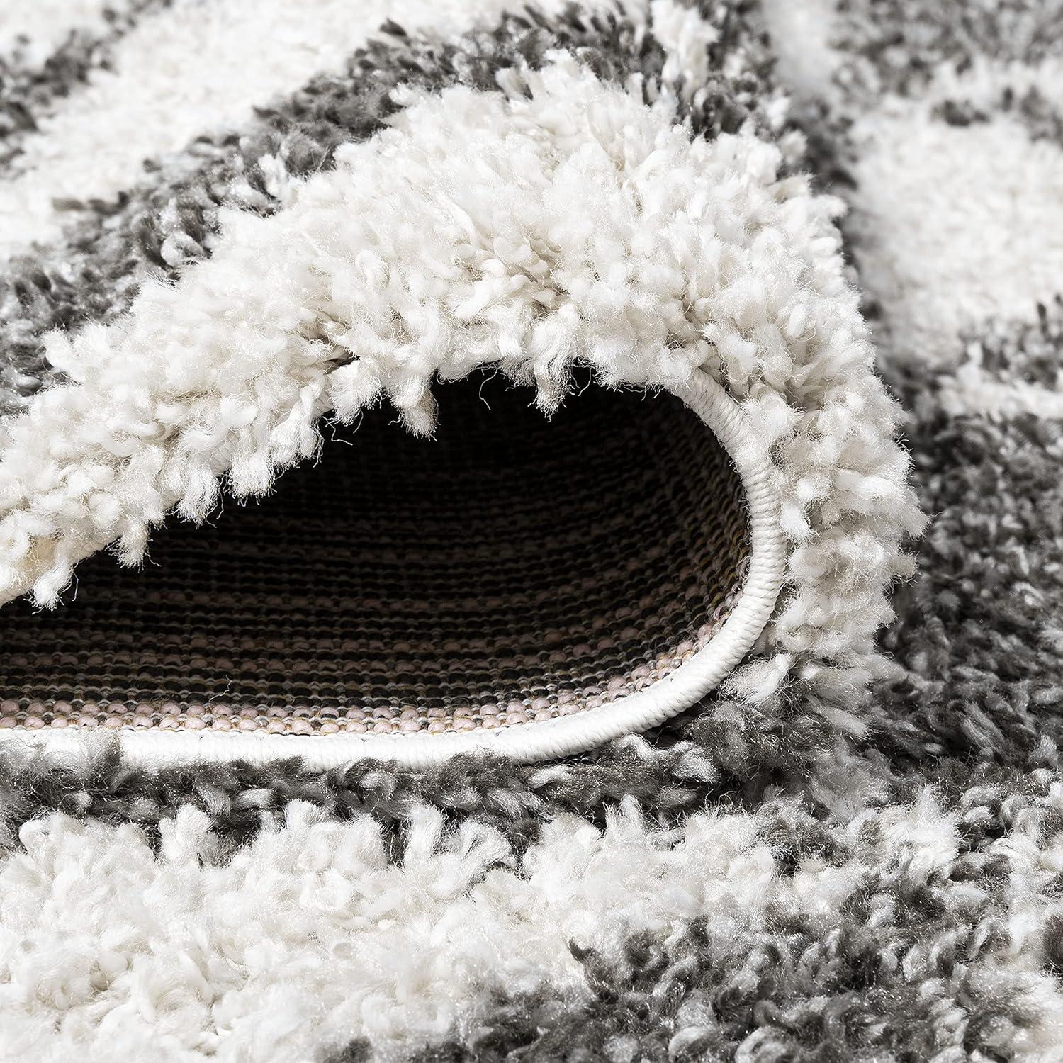 Inspired by Moroccan tile, our geometric rug has a soft, fluffy shag pile. The all-over pattern is woven in a modern deep gray and ivory. Add some graphic mid-century punch to your living room, bedroom, or reading nook with this easy-care rug.