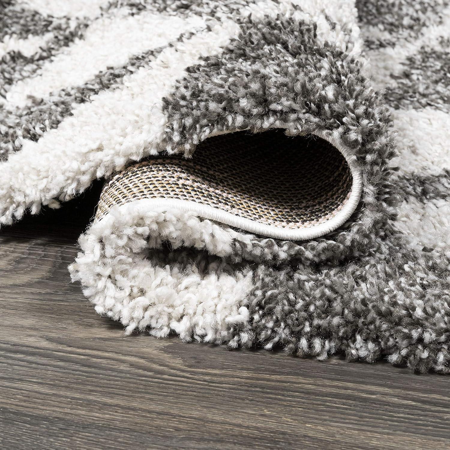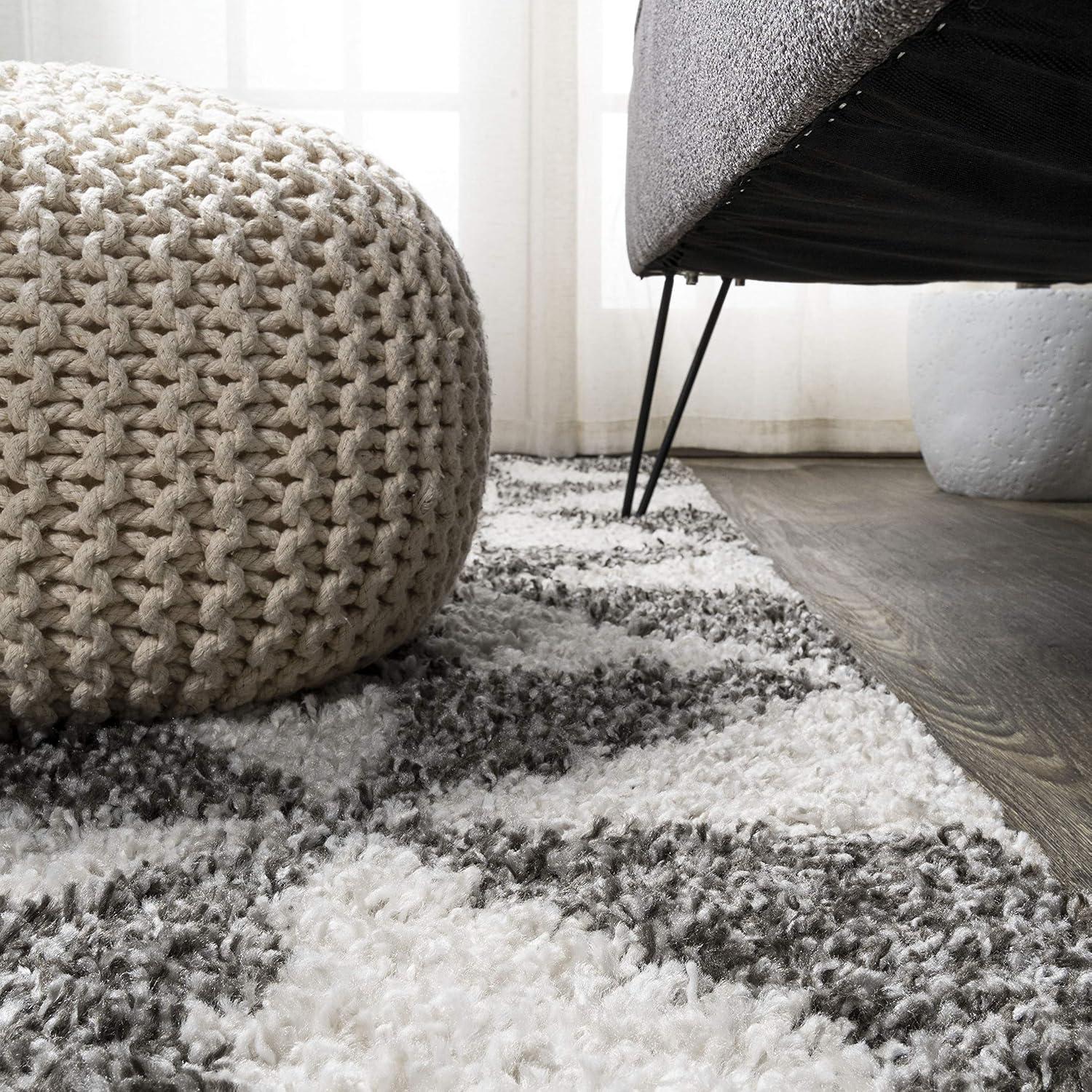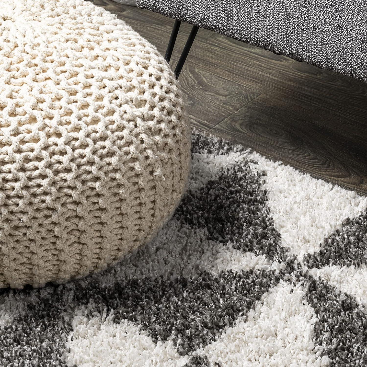 Inspired by Moroccan tile, our geometric rug has a soft, fluffy shag pile. The all-over pattern is woven in a modern deep gray and ivory. Add some graphic mid-century punch to your living room, bedroom, or reading nook with this easy-care rug.