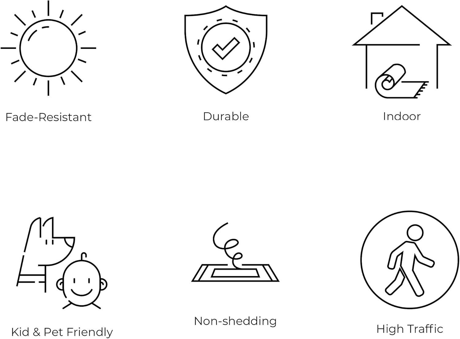 PET-FRIENDLY AND DURABLE: Durable for high-traffic areas, soft and comfortable area rug perfect for families with kids; Low-pile synthetic rug fibers won’t trap dirt and debris, so they’re pet-friendly and easy to clean