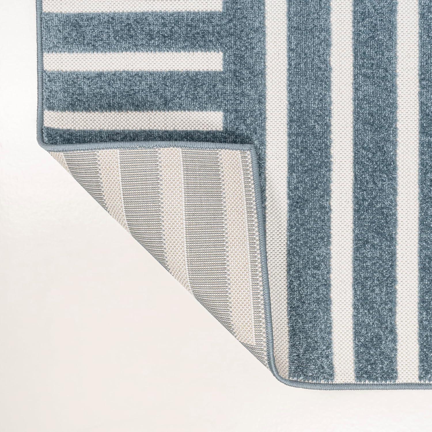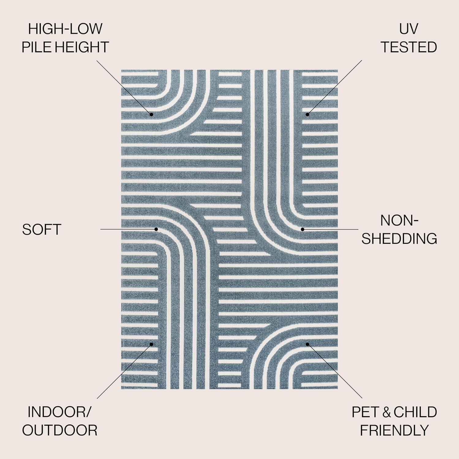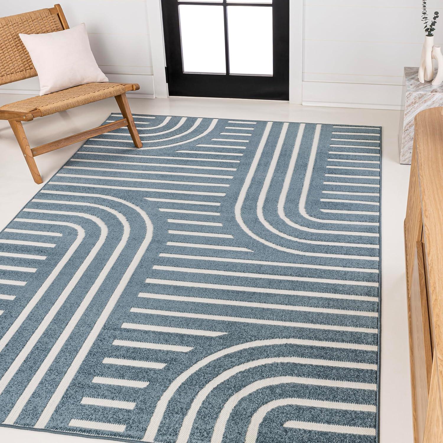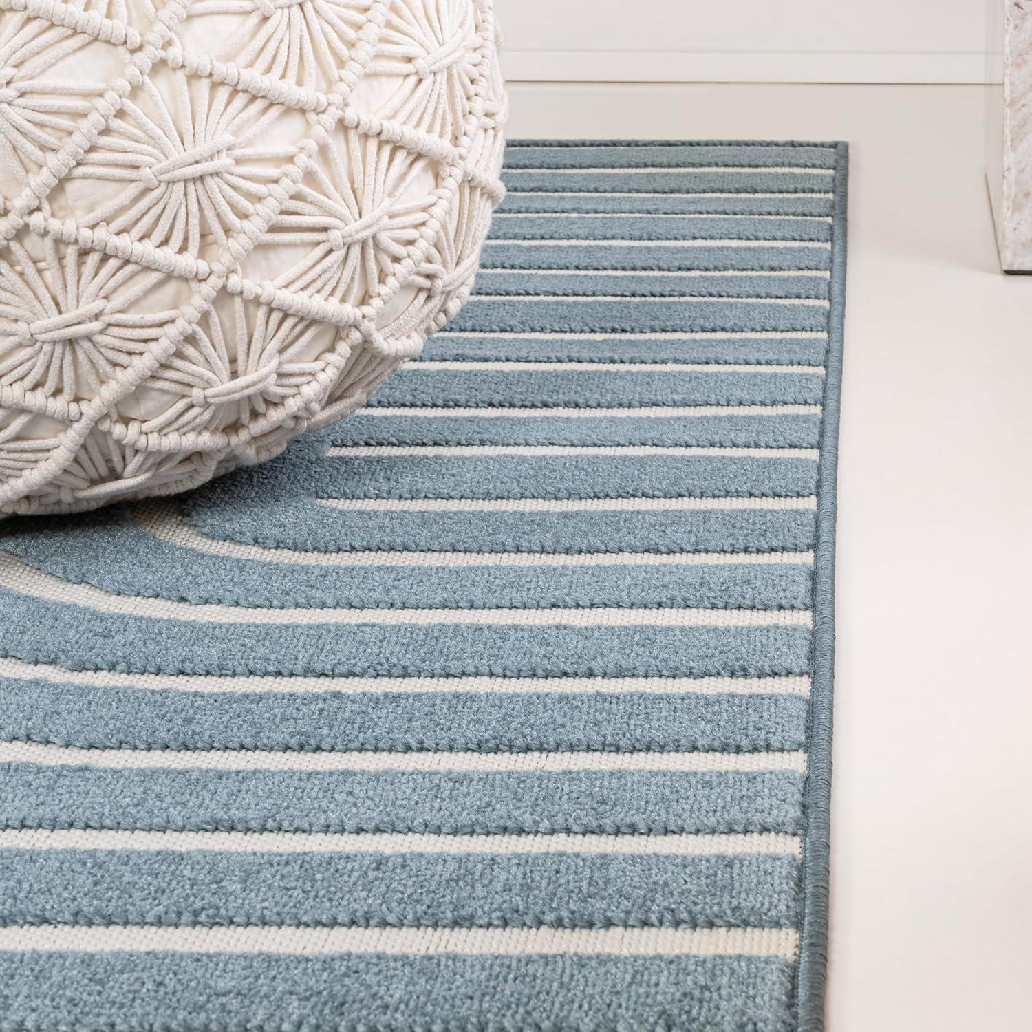 JONATHAN Y High-Low Arch Stripe Two-Tone Navy/Cream 8×10 Indoor/Outdoor Area Rug, Anders MidCentury Modern, for Patio, Backyard, Living Room, Bedroom, Office, Hose-Washable (SCN107A-8)(Navy/Cream)