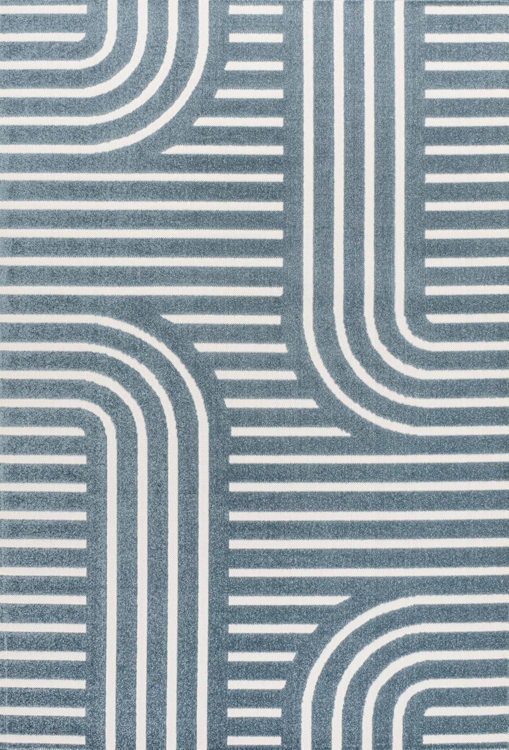 The geometric pattern of this modern rug is inspired by minimalist Scandinavian designs. Soft polypropylene fibers are woven into stripes with abstract arch accents, in a high-low pile that accentuates the pattern. Use this easy-care, family-friendly rug on the porch or deck, or in high traffic spaces like a living room, dining room or entry.