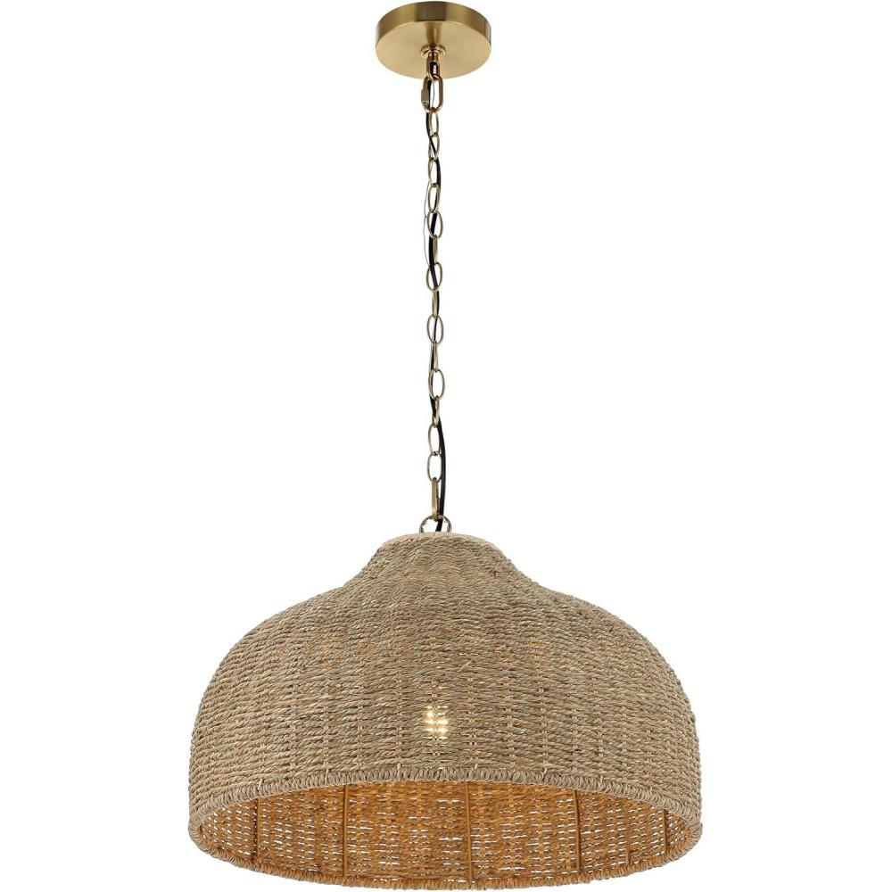 Our bohemian style pendant light will complement any coastal or cottage based decor in your home. Designed with an elegant rattan dome shade and classic metal chain, this light is perfect for a variety of spaces including dining rooms and kitchen islands. This pendant light is a great way to elevate your Mediterranean style home.