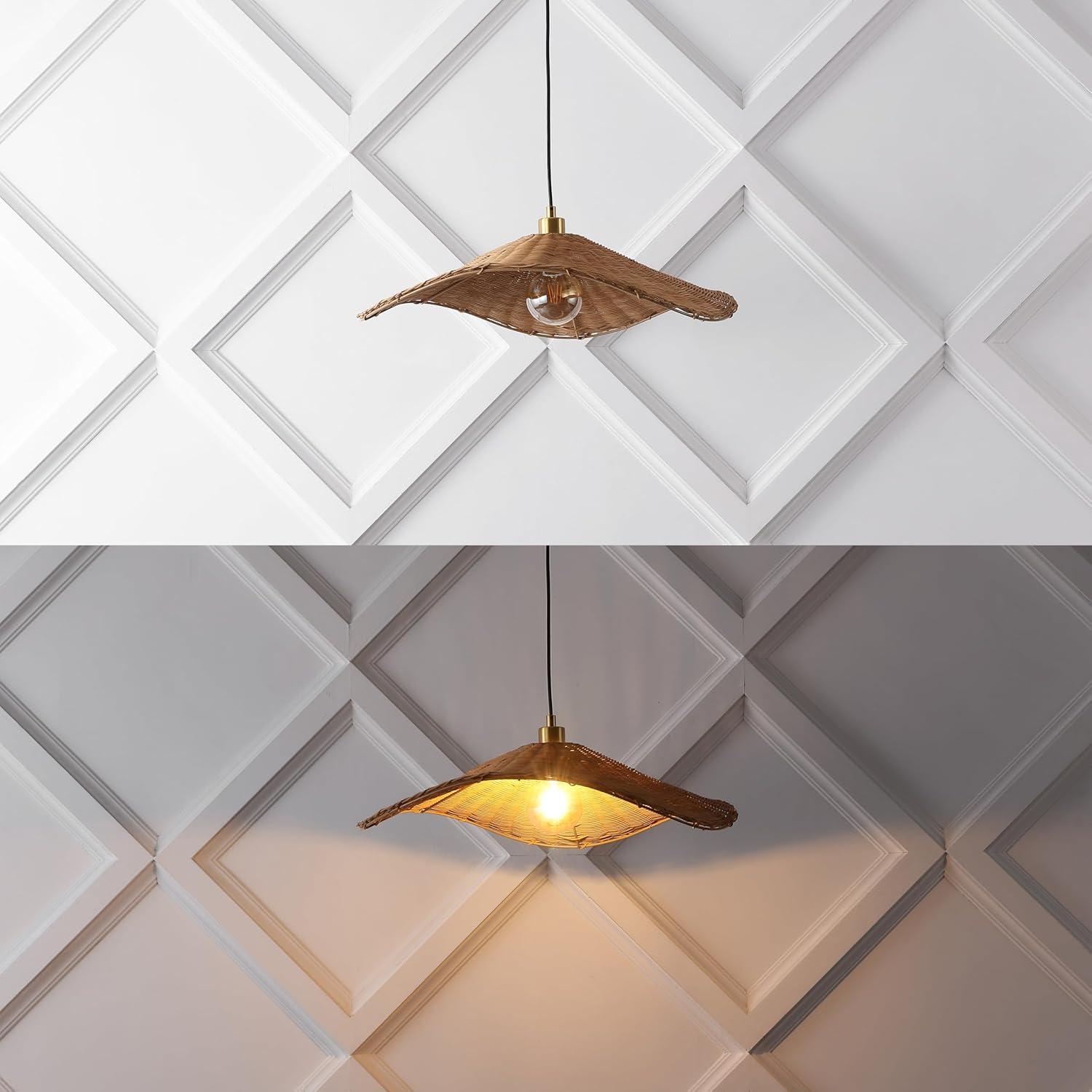 This modern pendant light adds coastal style to any space with the sweeping curves of its rattan shade. Natural rattan is combined with metal fittings and a an LED Edison bulb for bright, warm light. Use two or three over a kitchen island, bar, or dining table for a contemporary look.