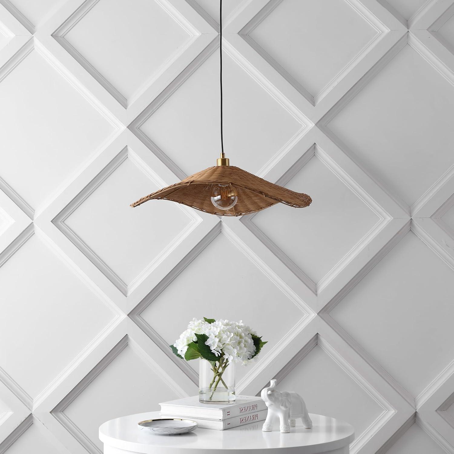 JONATHAN Y JYL1606A Miko 24.5″ Modern Coastal Organic Curve Rattan LED Pendant Minimalist, Transitional, Contemporary, Kitchen, Living Room, Bedroom, Dining Room, Natrual Brown/Brass Gold