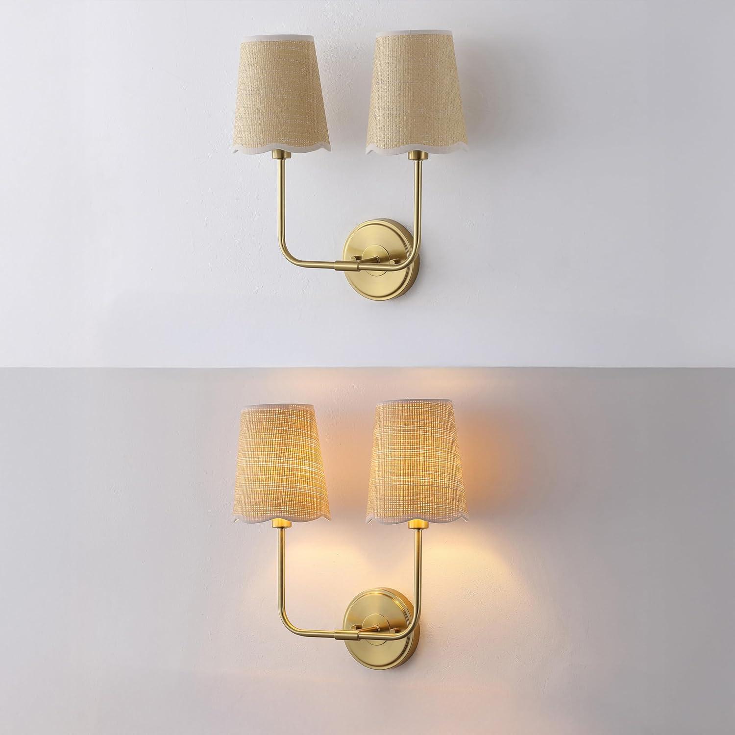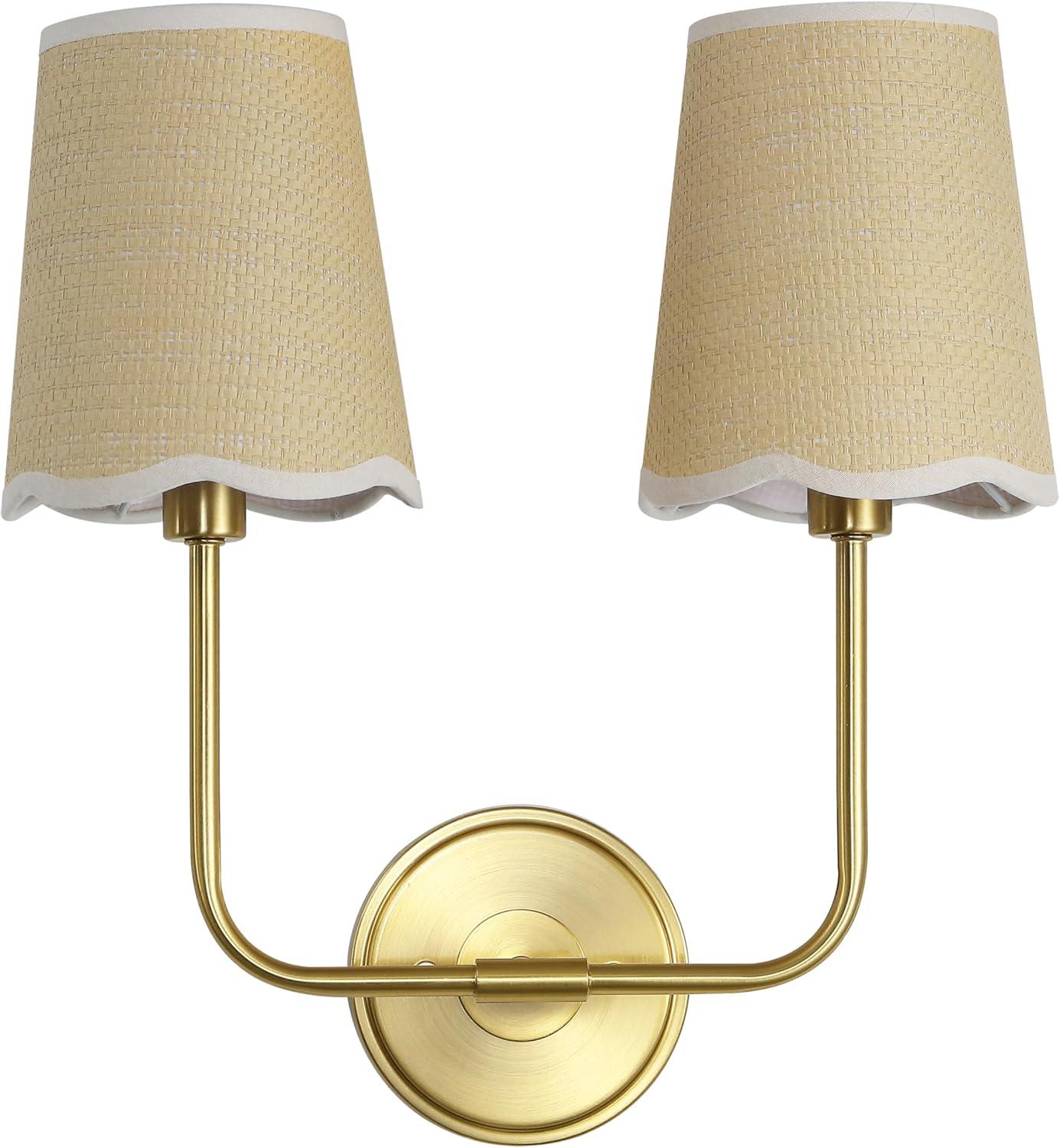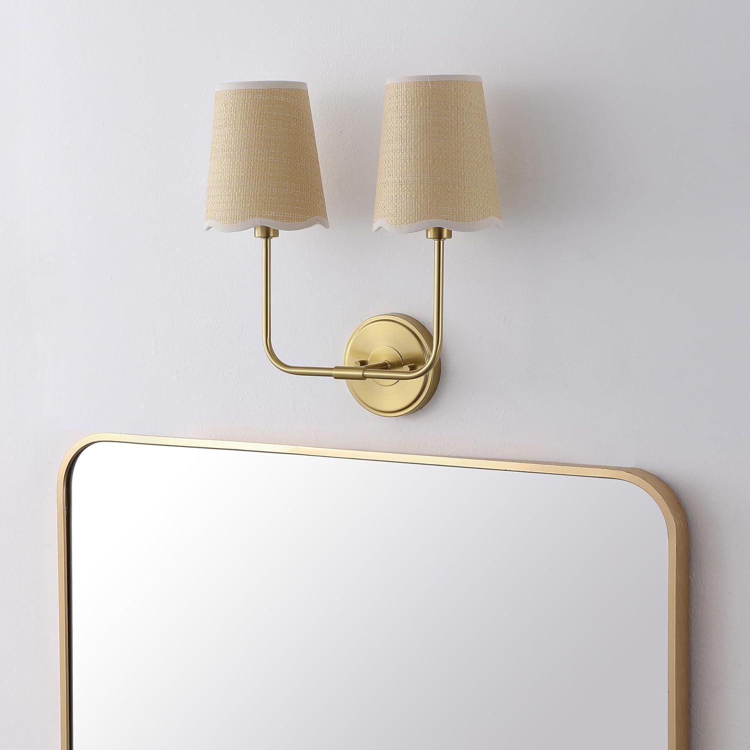 JONATHAN Y JYL1610A Lila 36.5″ 4-Light Traditional Coastal Scalloped Fabric Shade/Metal LED Vanity Light for Bathroom, Powder Room, Dressing Room, Bedroom, Brass Gold/Brown(2 Bulb)