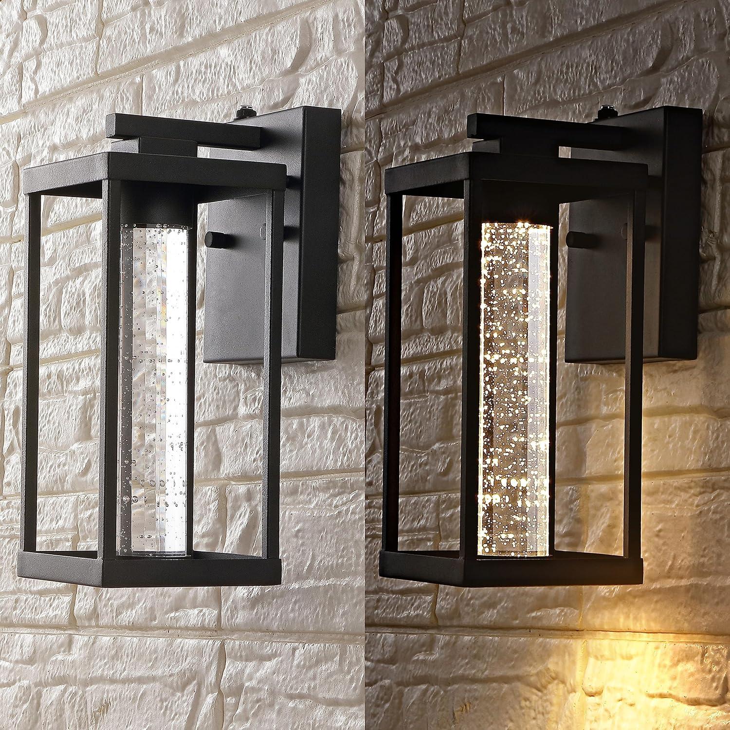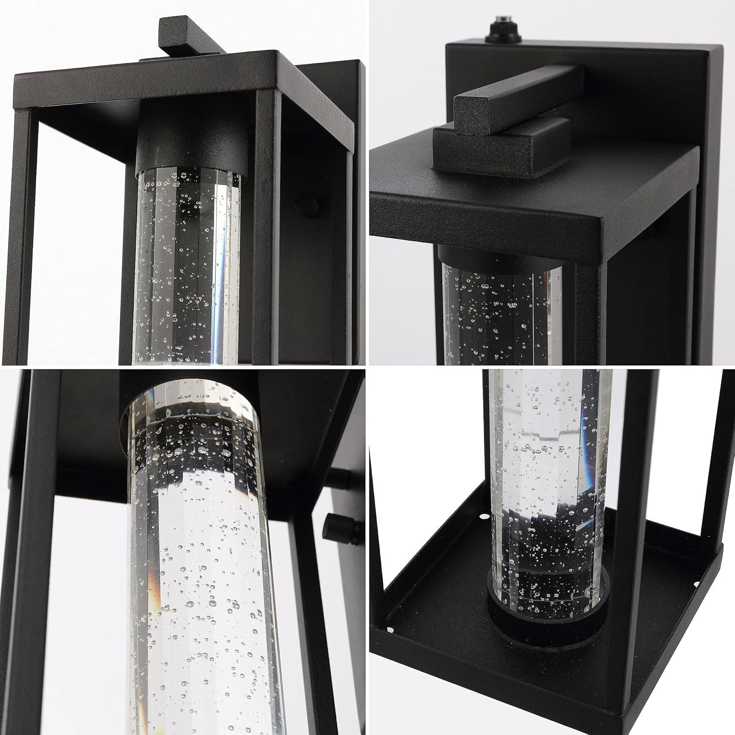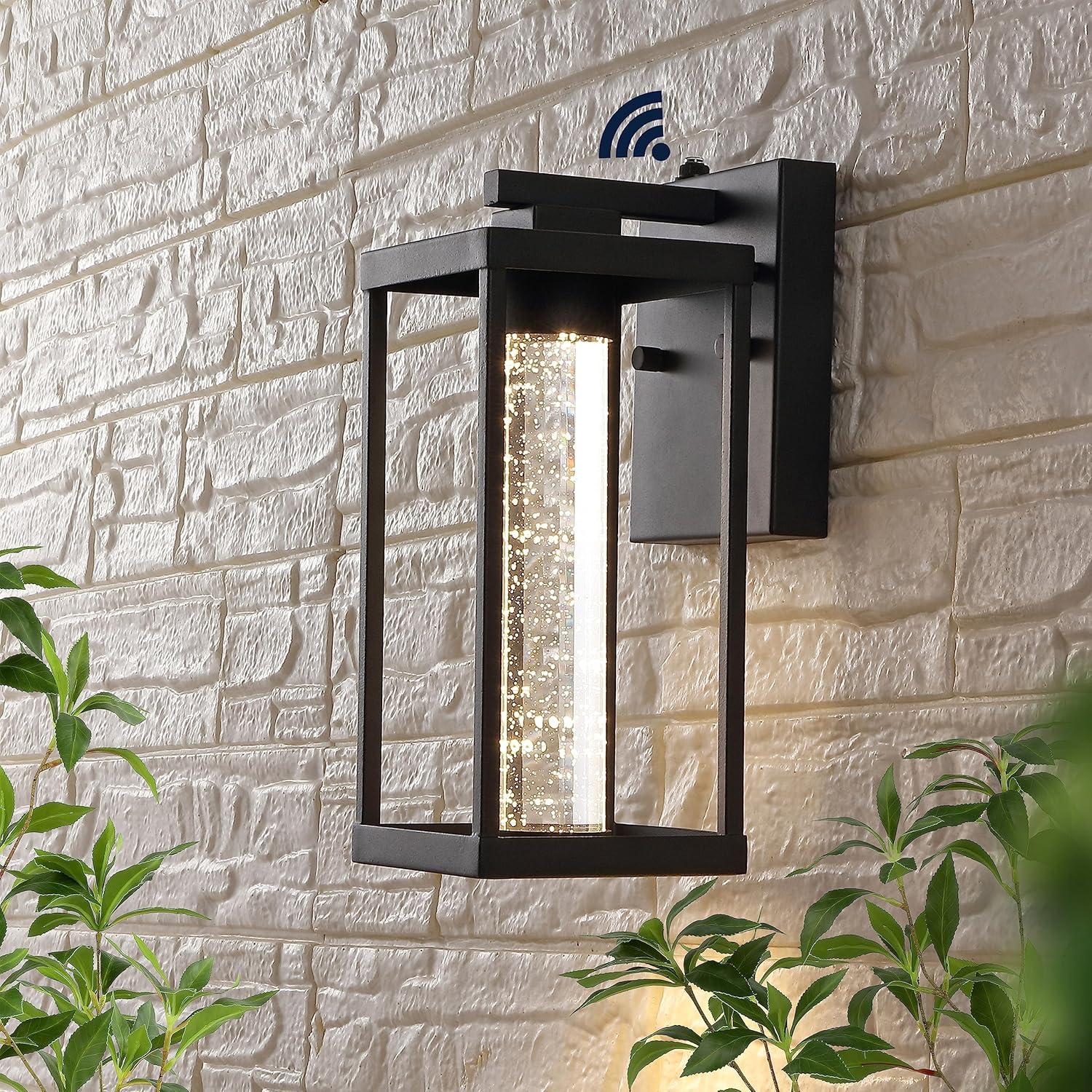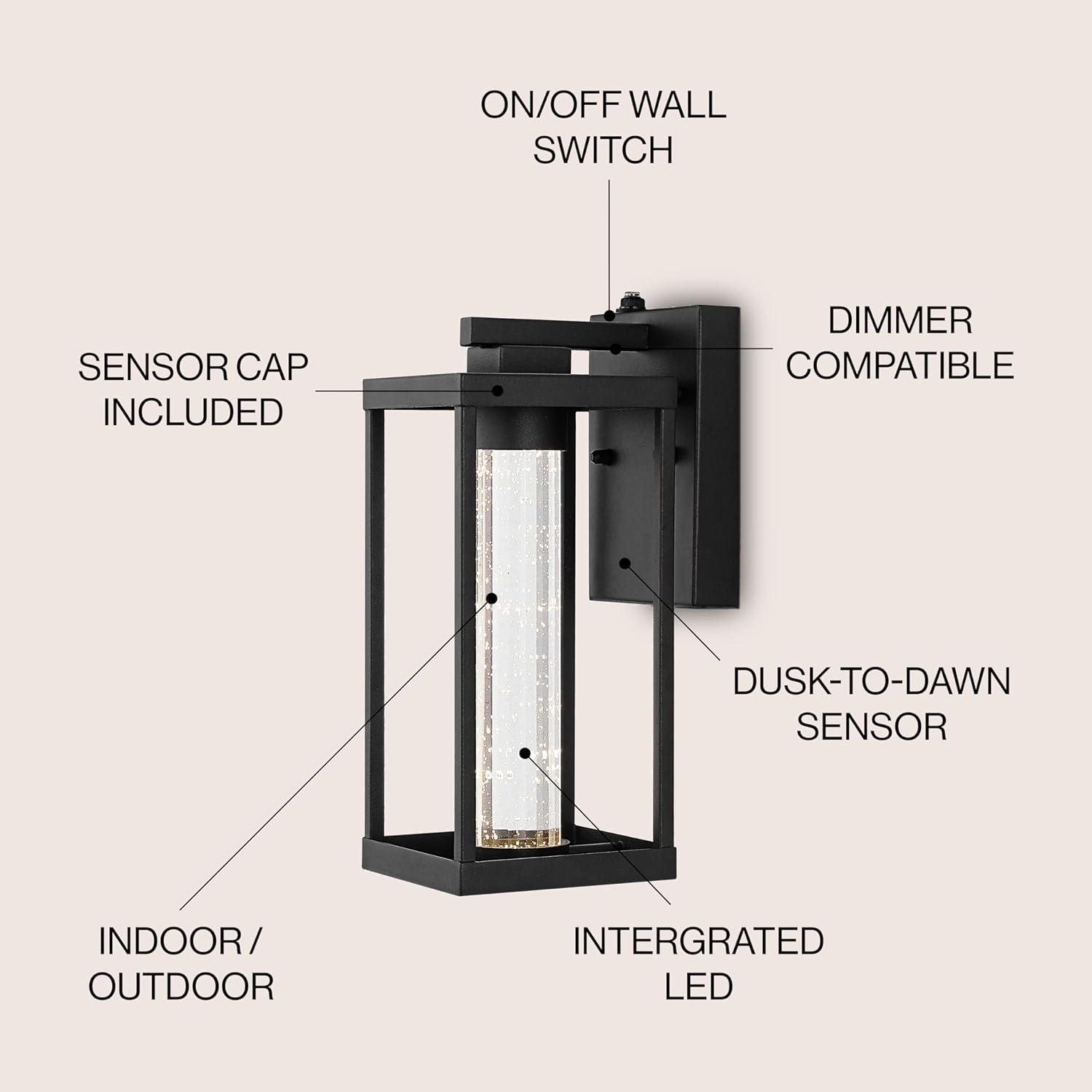 JONATHAN Y JYL2406A Juno 4.75″ 1-Light Industrial Vintage Farmhouse Modern Traditional Iron/Glass Seeded Glass with Dusk-to-Dawn Sensor Integrated LED Outdoor Sconce, Black
