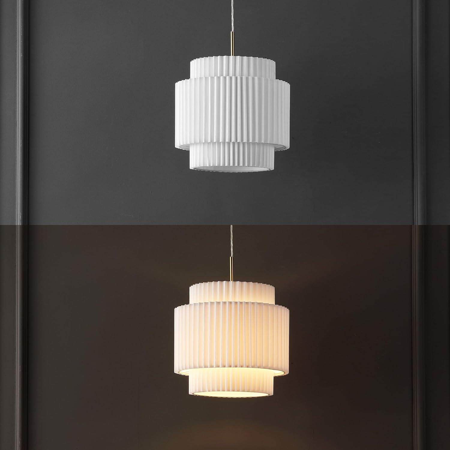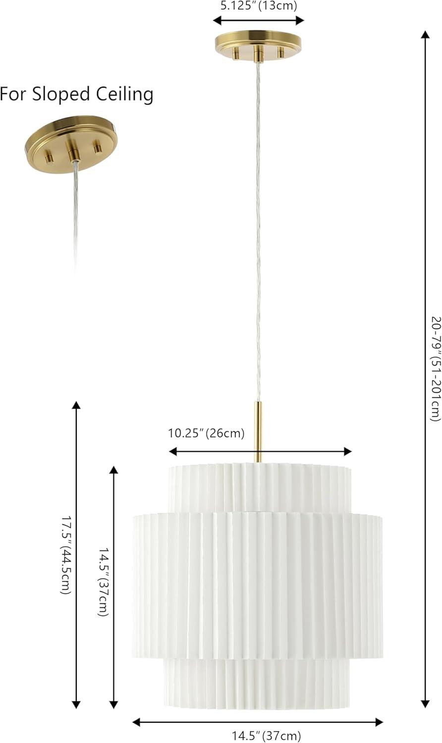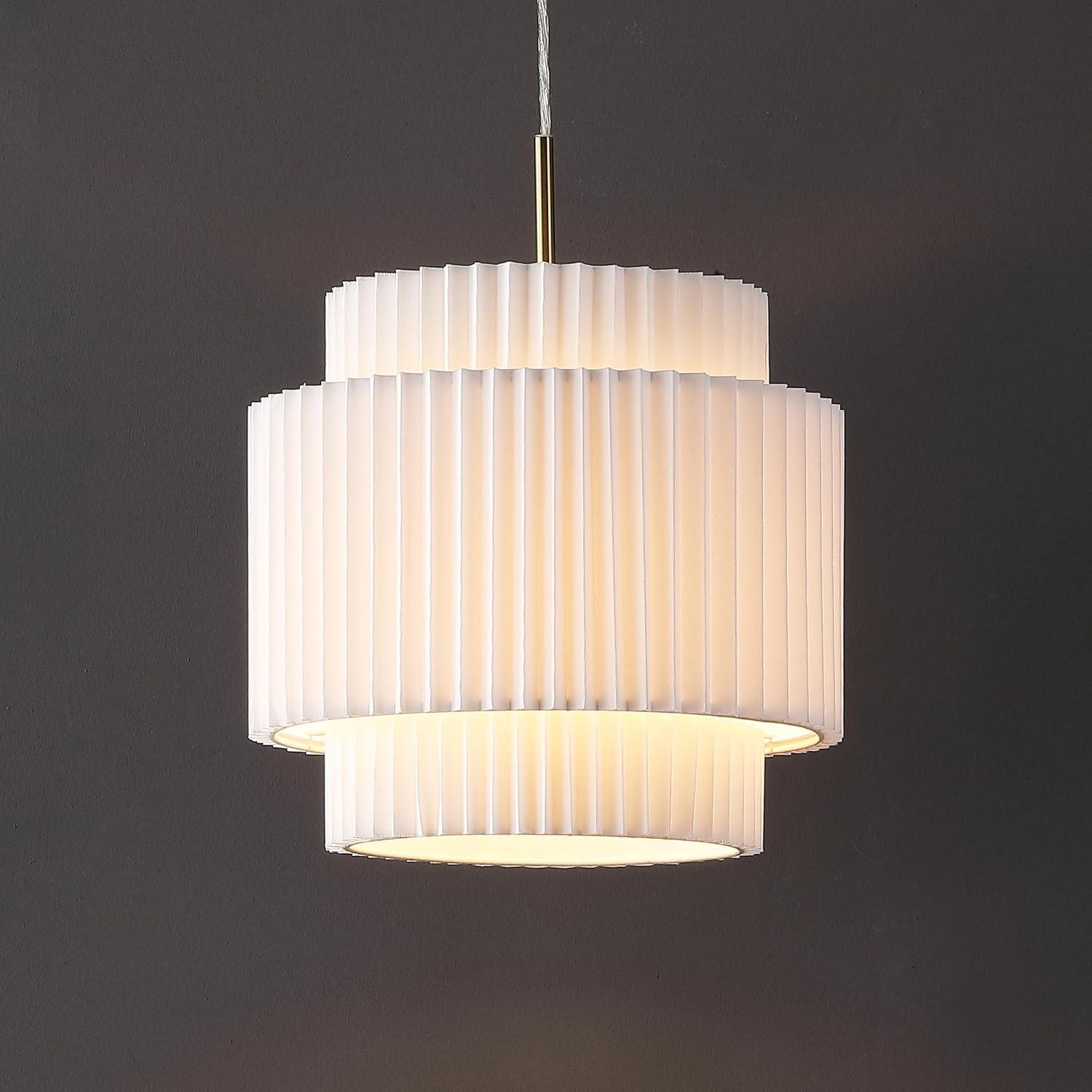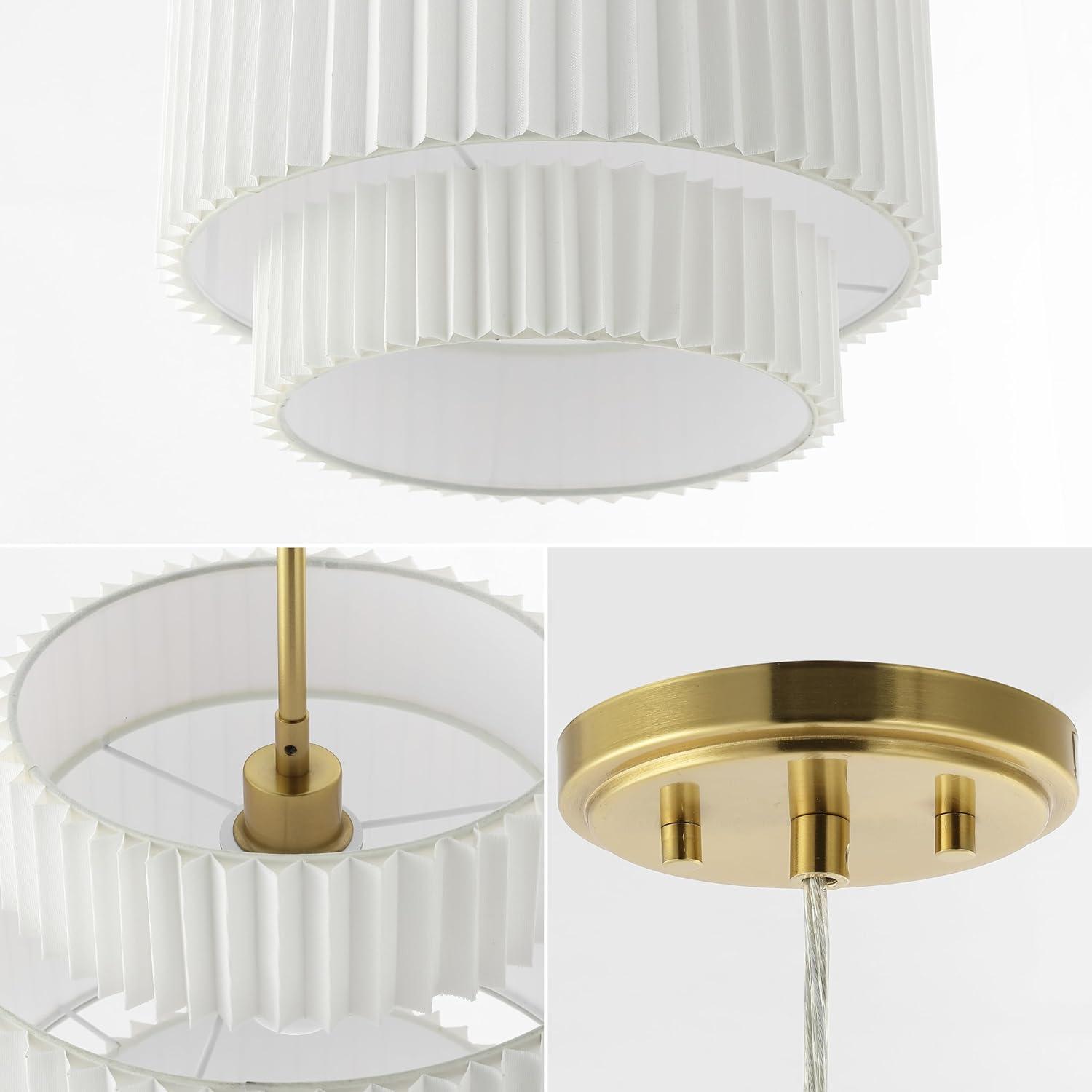 JONATHAN Y JYL2408A Boden 14.5″ 1-Light Vintage Mid-Century Iron LED Pendant with Pleated Shade, Brass Gold/White for Kitchen Island, Bar, Dining Table, Dining Table, Bedroom