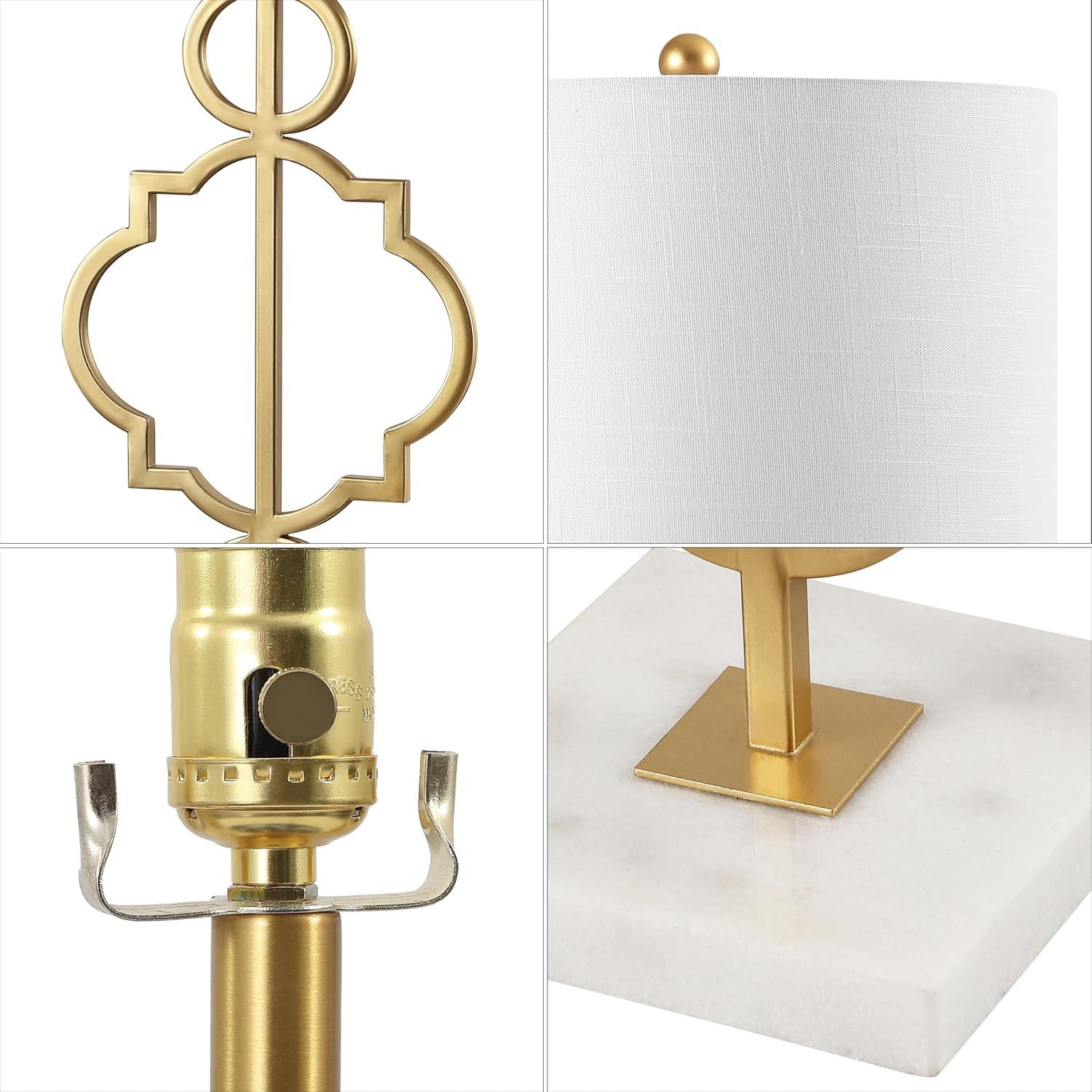 A quatrefoil motif gives this table lamp a bit of far-flung flair. The marble pedestal lends a contemporary edge while the gilded iron finish is a nod to the classics. Topped with a white linen drum shade, it works well with a variety of home décor styles — including your own.
