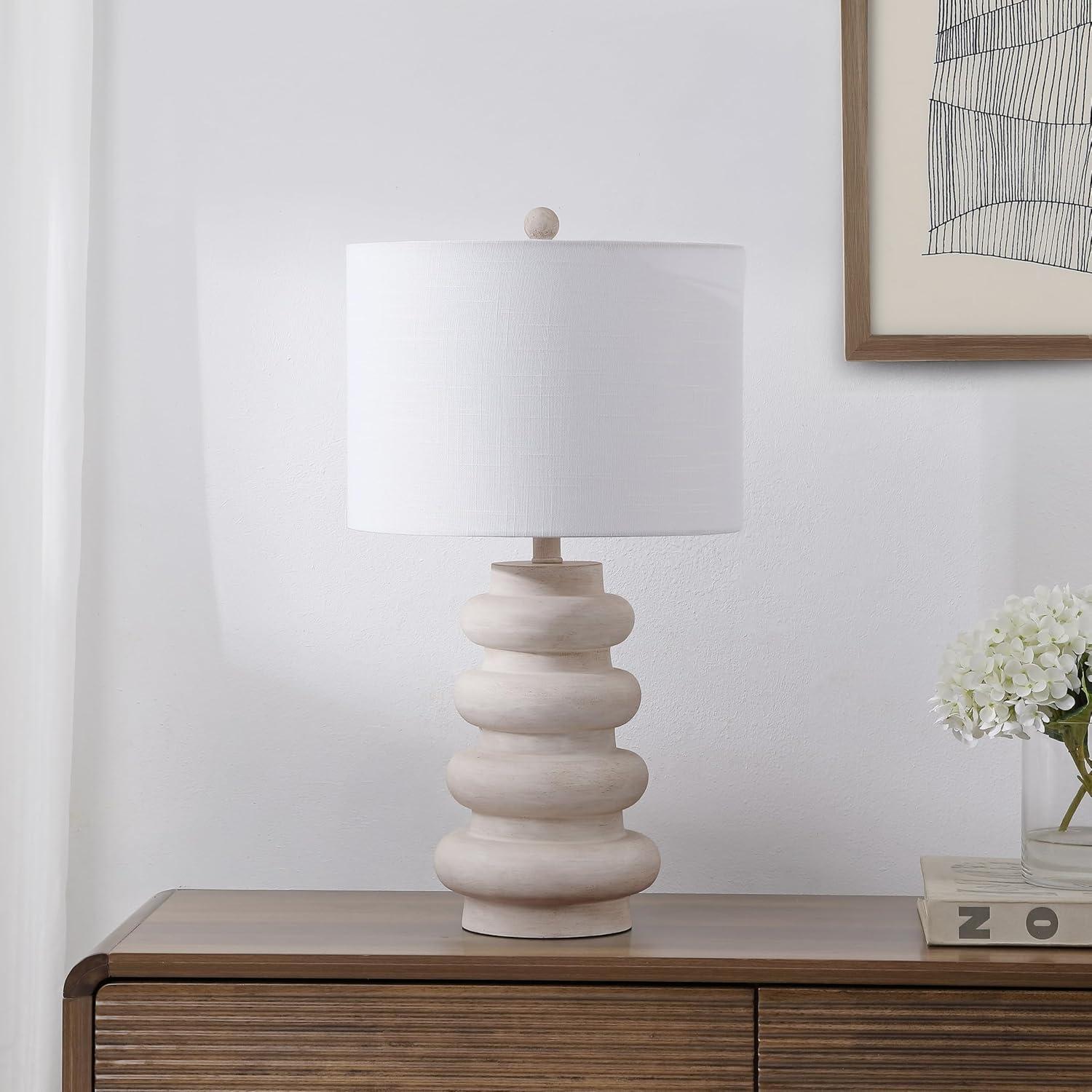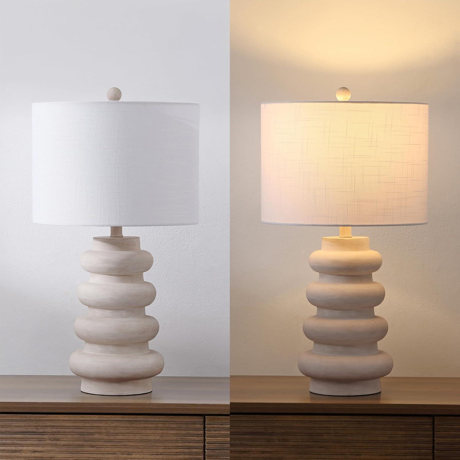 JONATHAN Y JYL5506A Juniper 26″ Modern Minimalist Resin Stacked Ovoid LED Lamp for Living Room, Family Room, Dining Room, Bedroom, Hallway, Office, Antique White