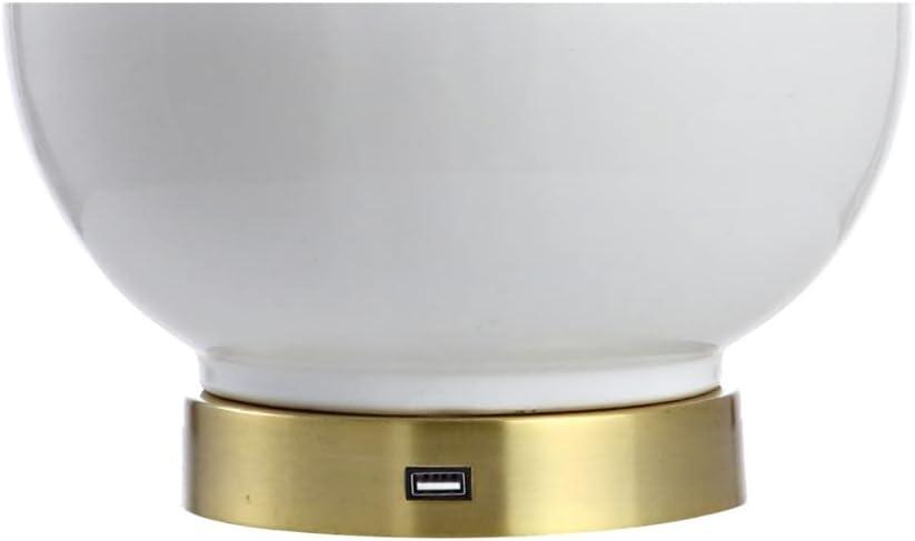 JONATHAN Y JYL6600A Han 27″ Ceramic/Iron Contemporary USB Charging LED Table Lamp Bedside Desk Nightstand Lamp for Bedroom Living Room Office College Bookcase LED Bulb Included, White/Brass Gold