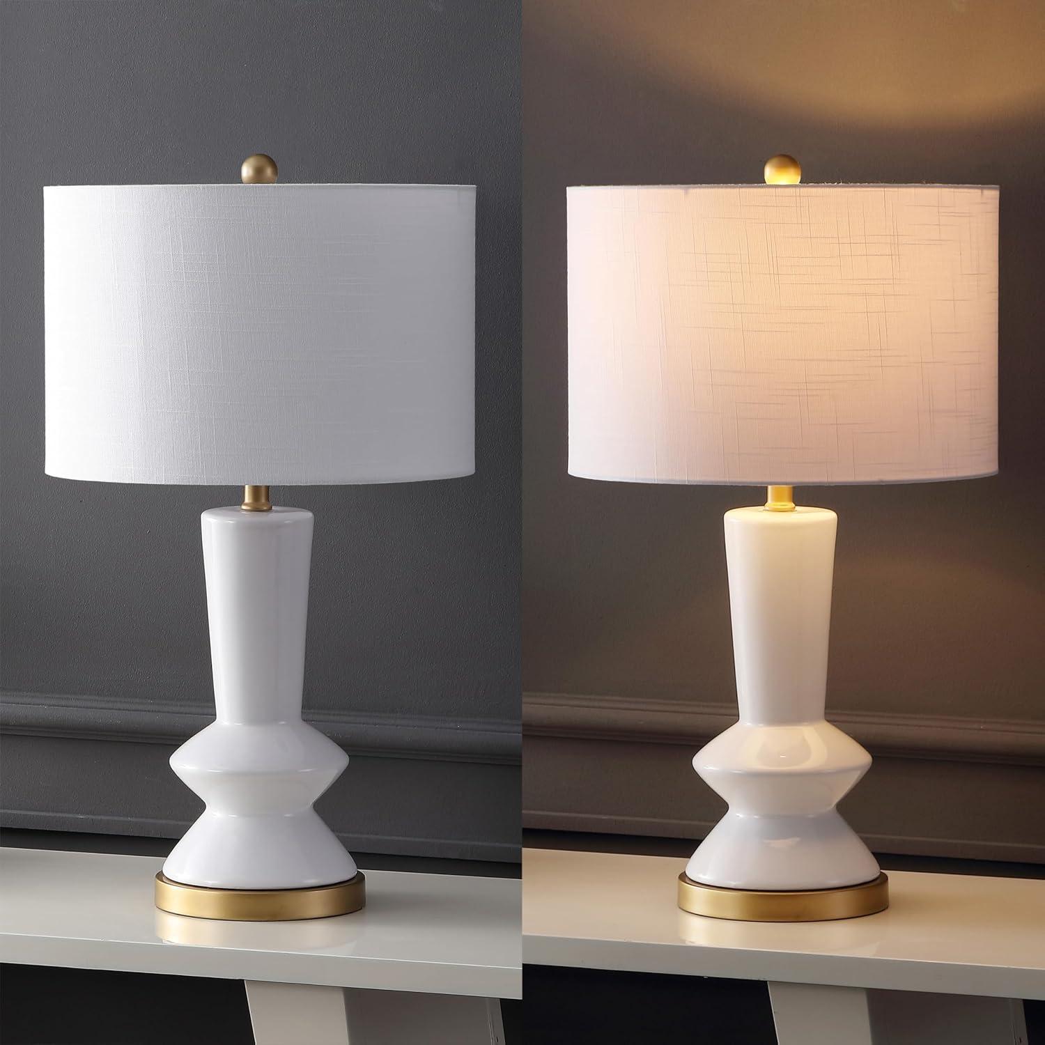 JONATHAN Y JYL6607B Ziggy 27″ Ceramic/Iron Contemporary Glam LED Table Lamp Bedside Desk Nightstand Lamp for Bedroom Living Room Office College Bookcase LED Bulb Included, Coral/Brass Gold(White/Brass Gold)