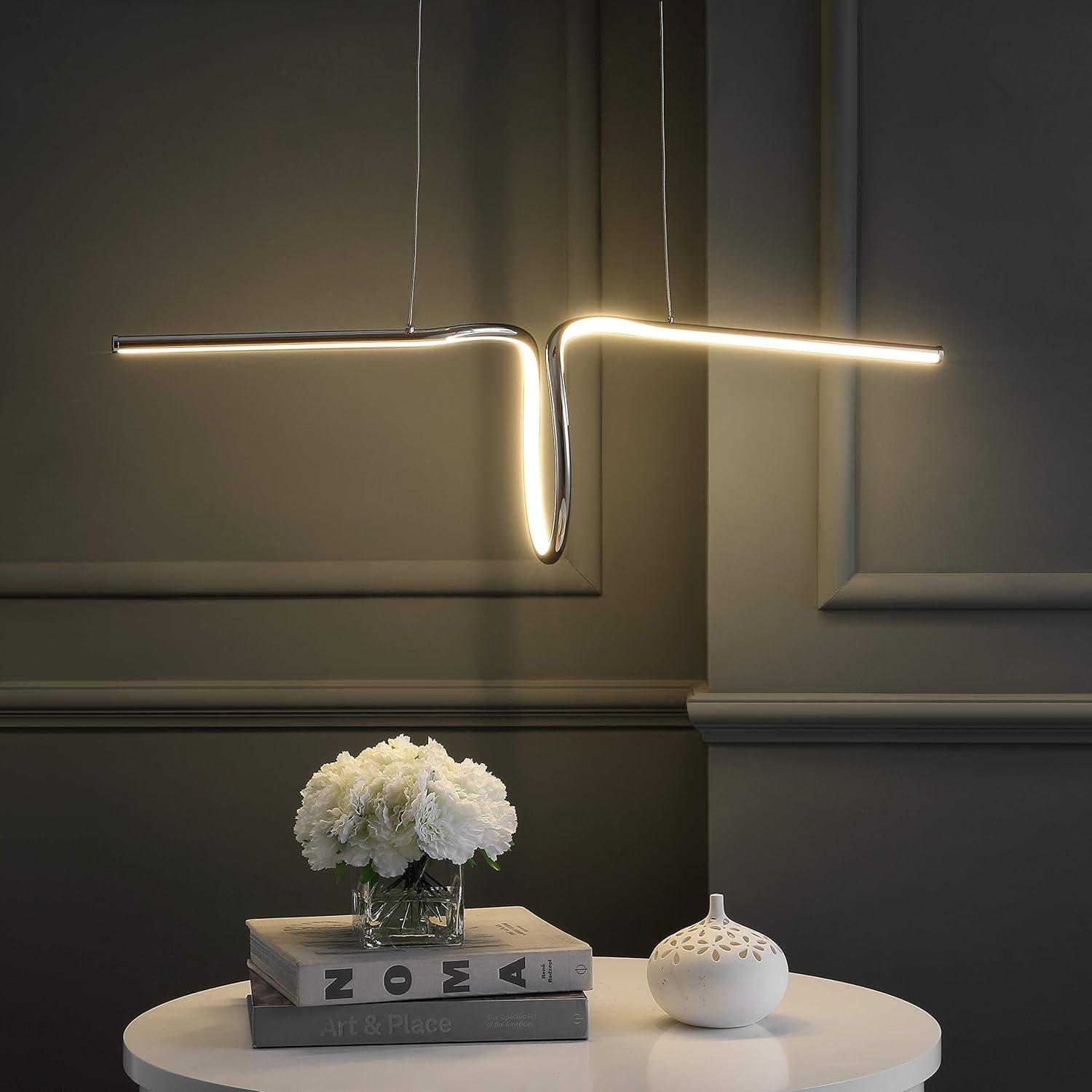 JONATHAN Y JYL7029B Ali 34.5″ Dimmable Adjustable Integrated LED Metal Linear Pendant Minimalistic Modern Contemporary Dining Room Living Room Kitchen Foyer Bedroom Hallway, Black(Chrome)