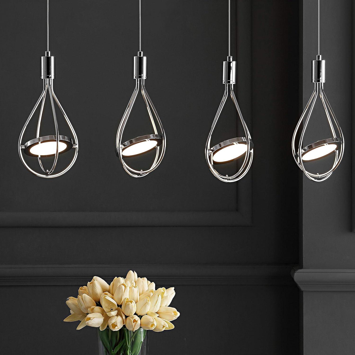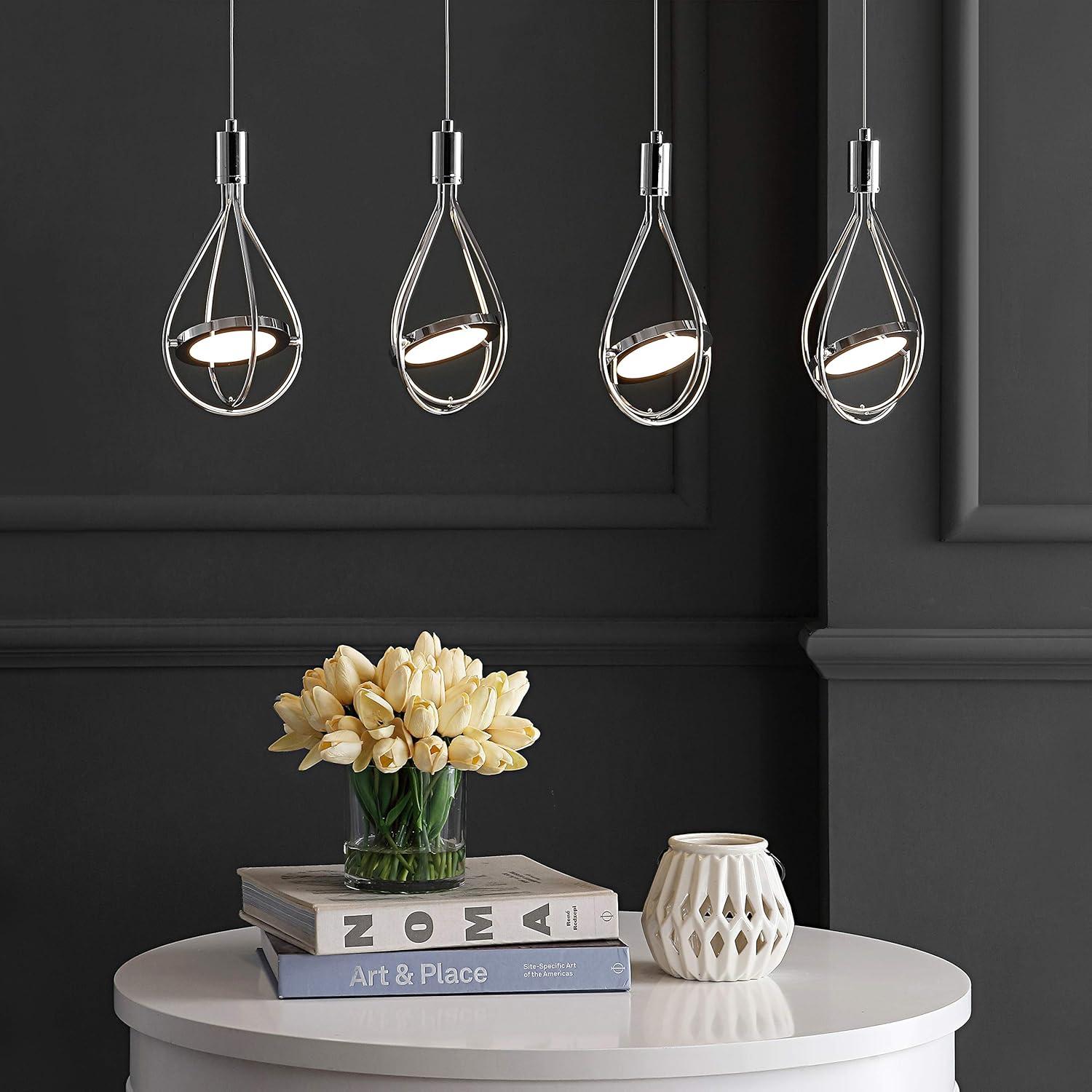 JONATHAN Y JYL7032A Orion 5.5″ Adjustable Modern Integrated 1-Light Cluster LED Metal Pendant Contemporary Glam Midcentury Dimmable Dining Room Living Room Kitchen Foyer Bedroom Hallway, Chrome(4-Light)