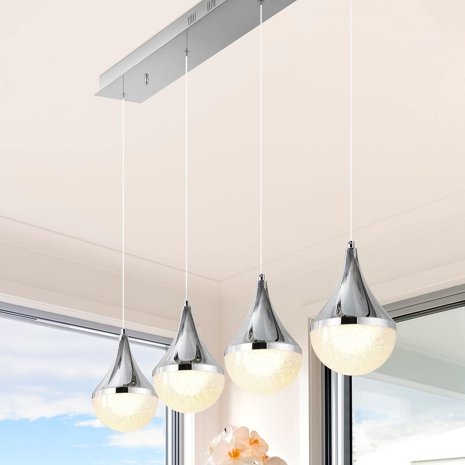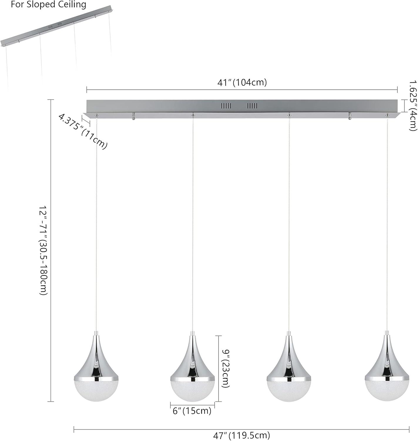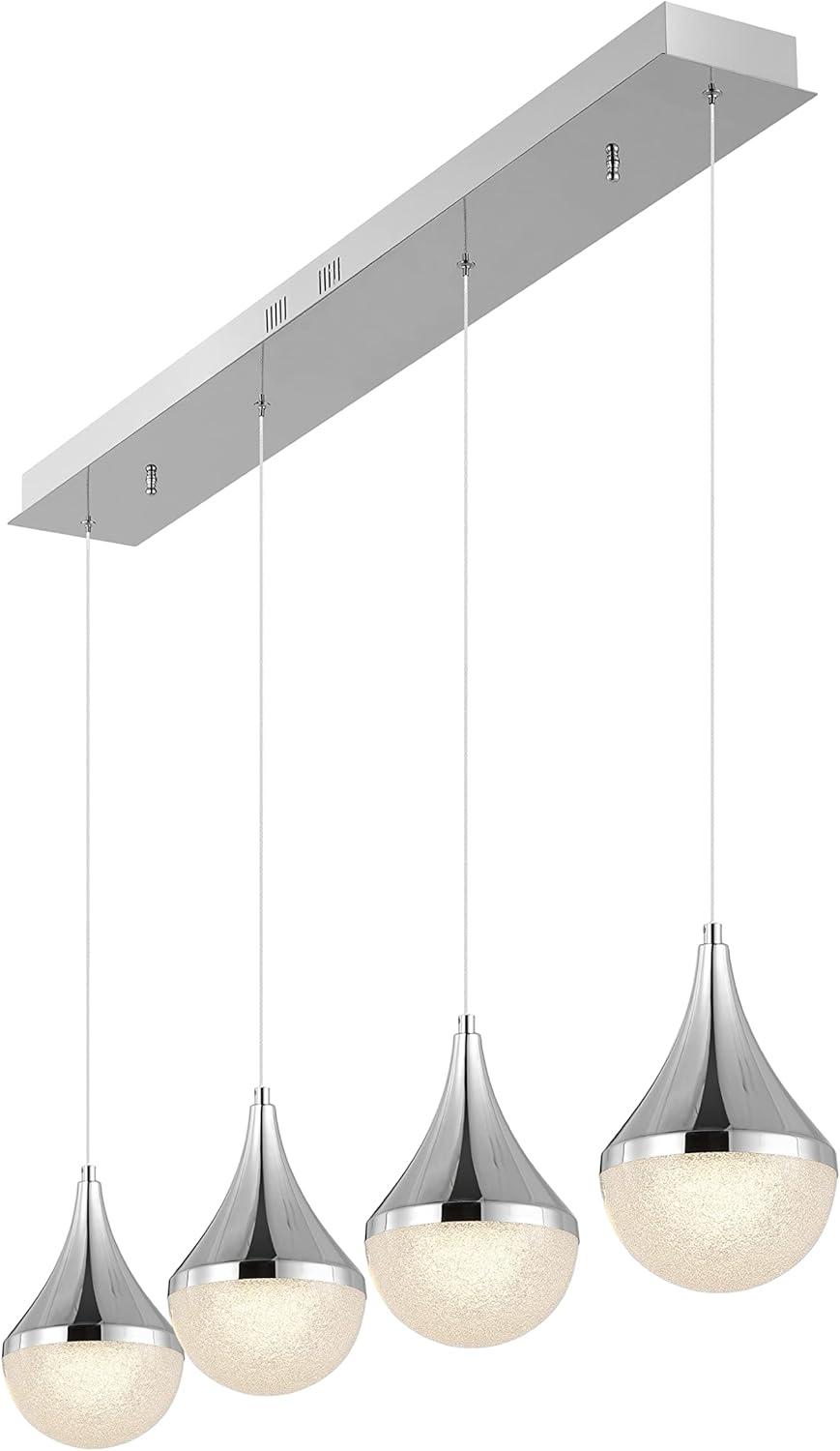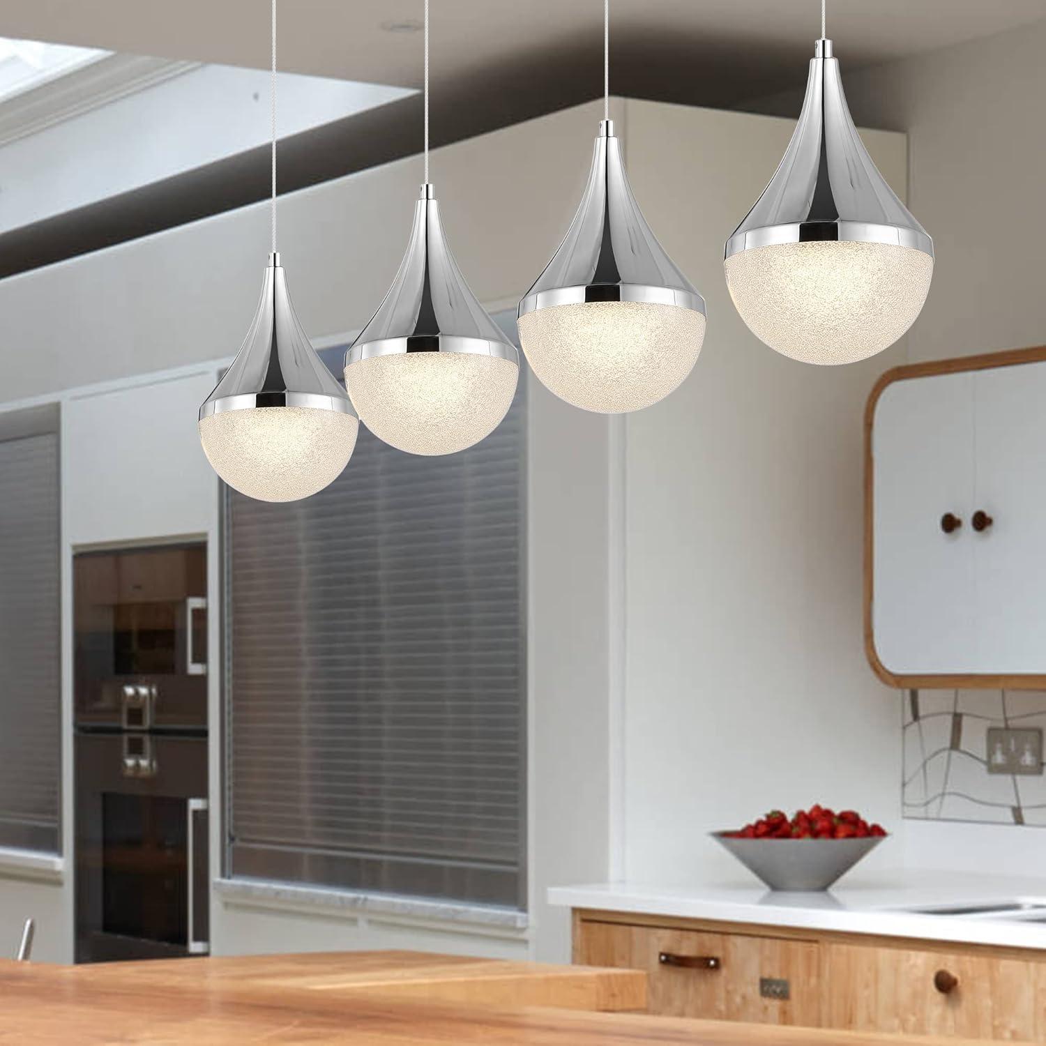 Pendant heights are individually adjustable and integrated LED bulbs; for ceilings up to twelve feet high