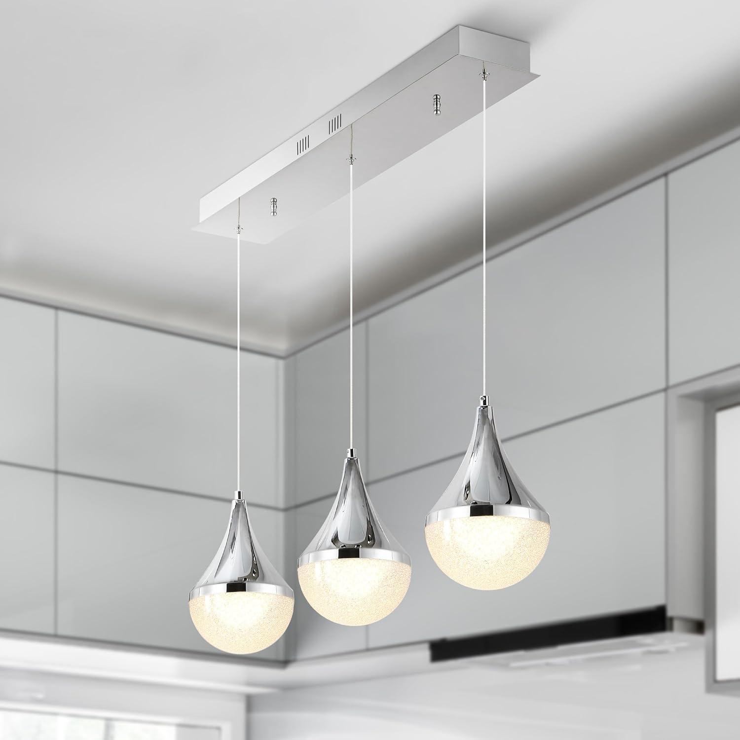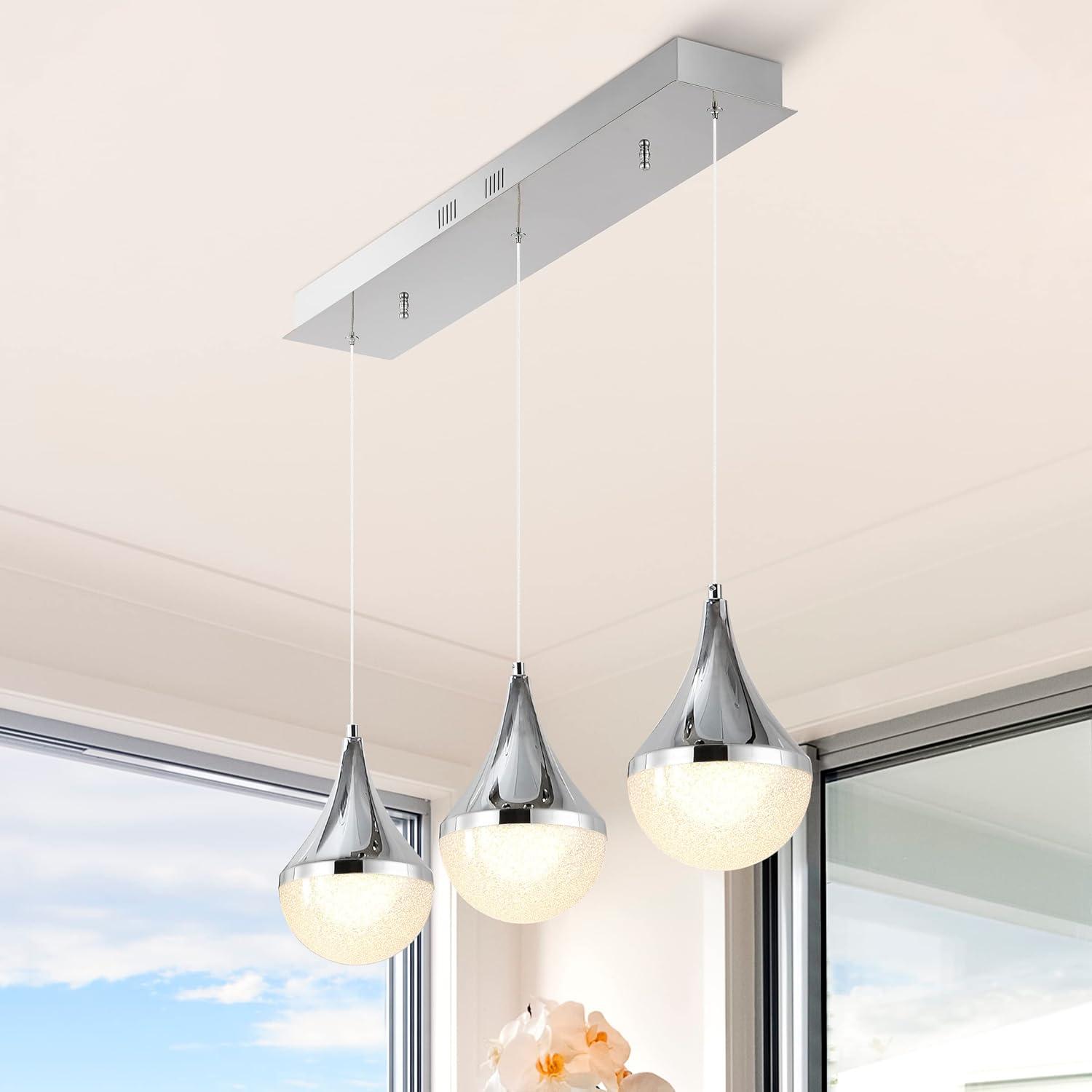 Perfectly sized for a kitchen island, small dining room, or over a desk, our 3-light pendant's minimalist design features teardrop pendants in a linear arrangement. Energy-efficient integrated LED bulbs never need changing. The adjustable globes provide soft lighting for your mid-century modern or contemporary kitchen, dining room, or home office.