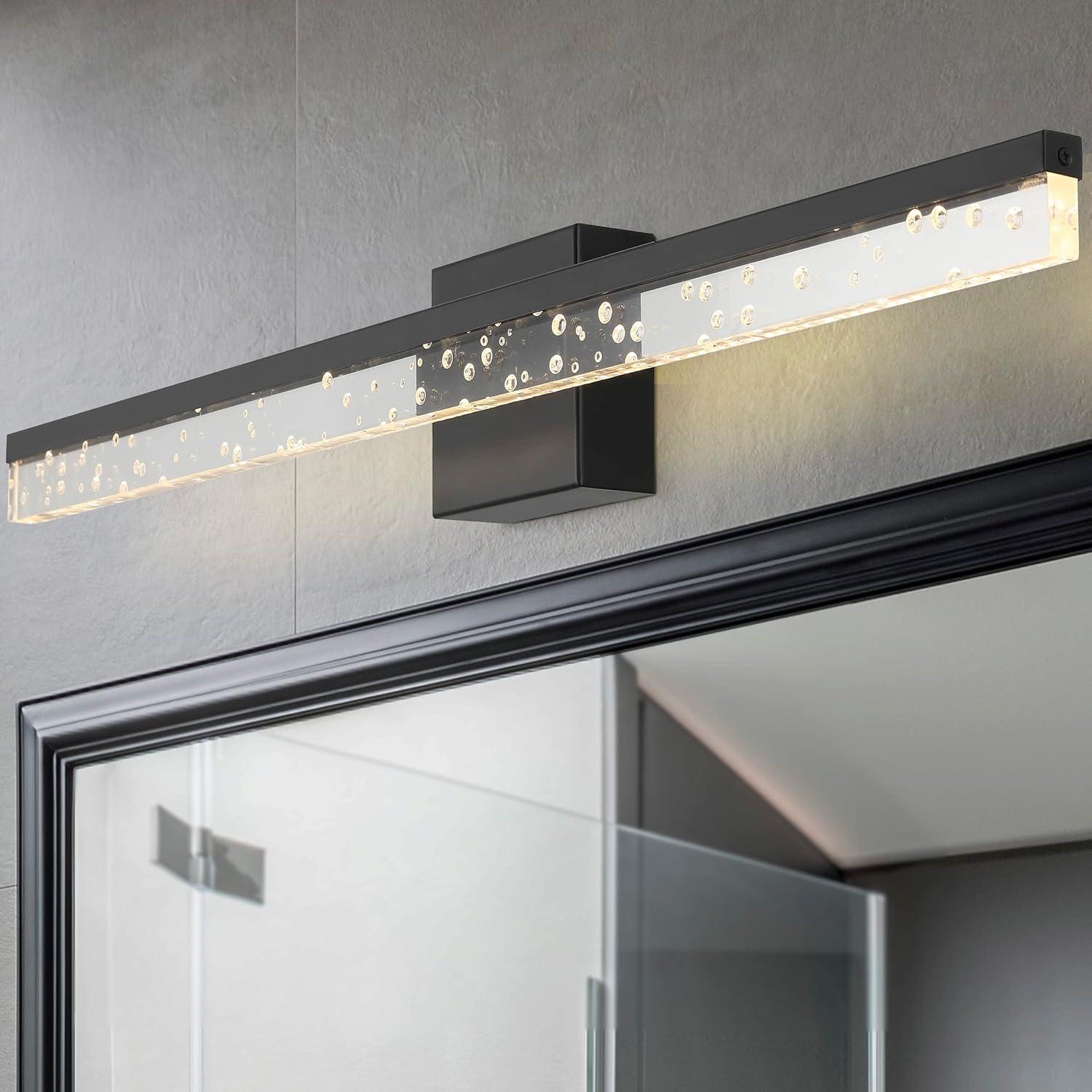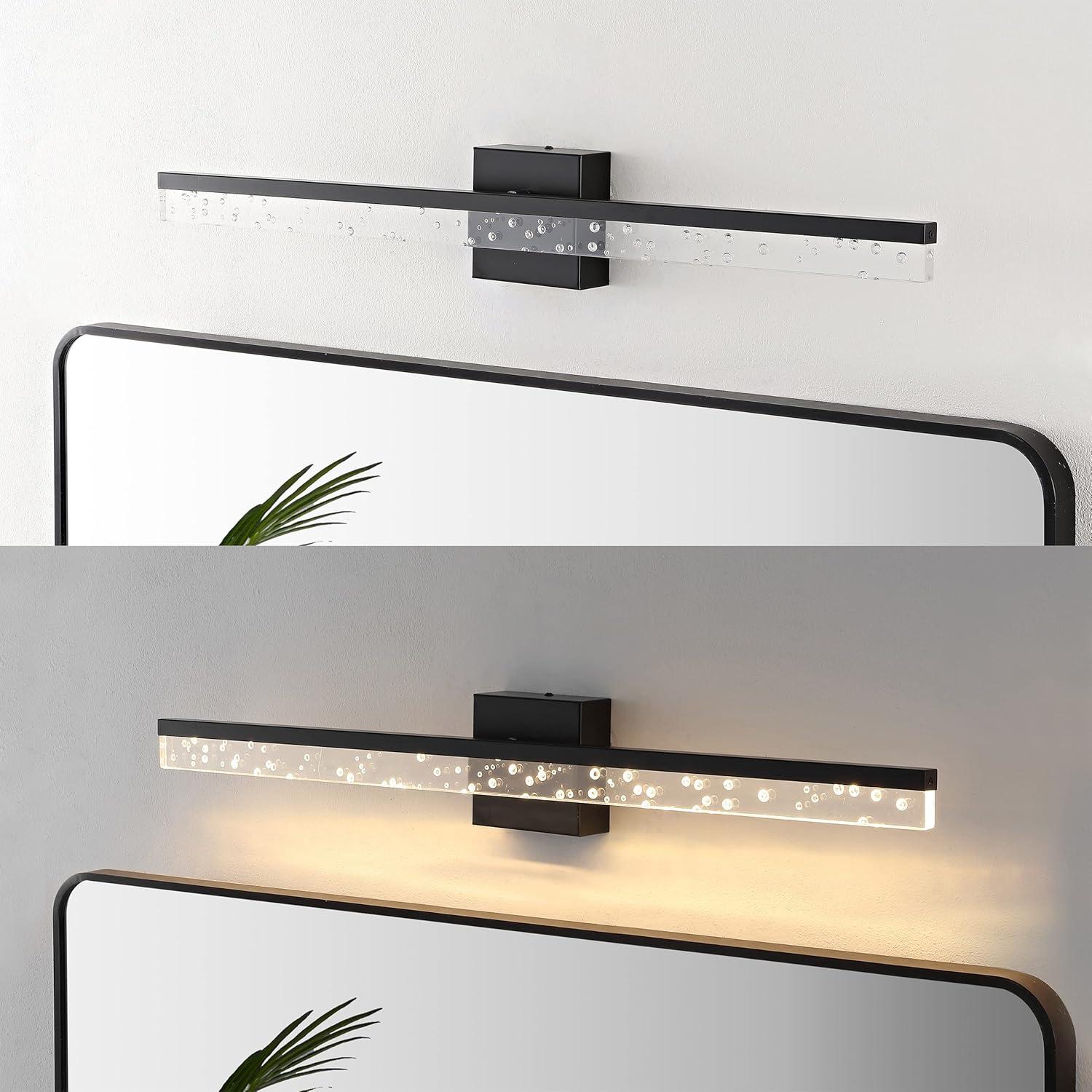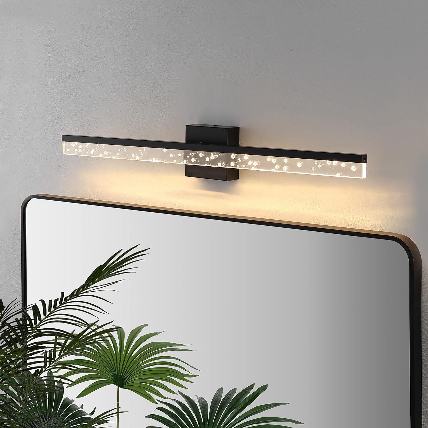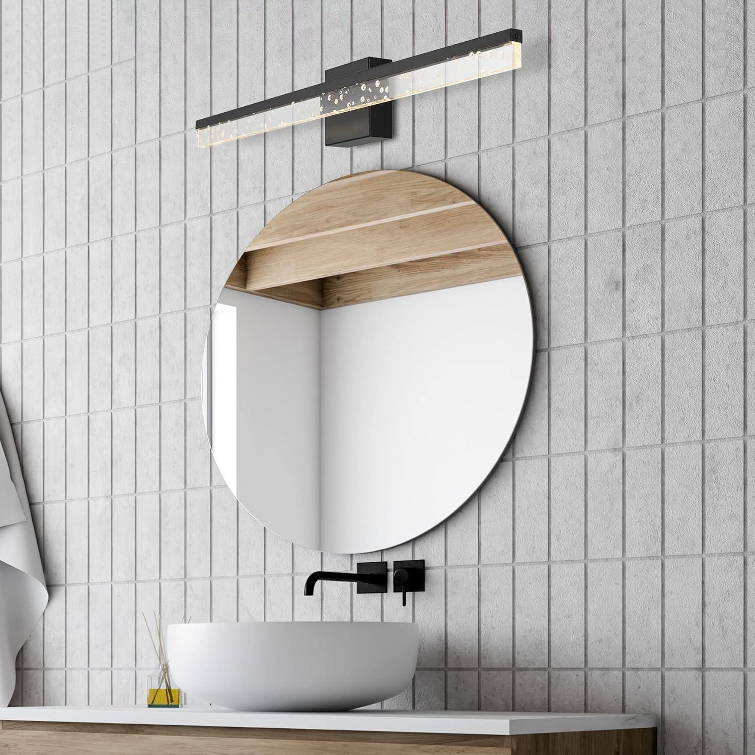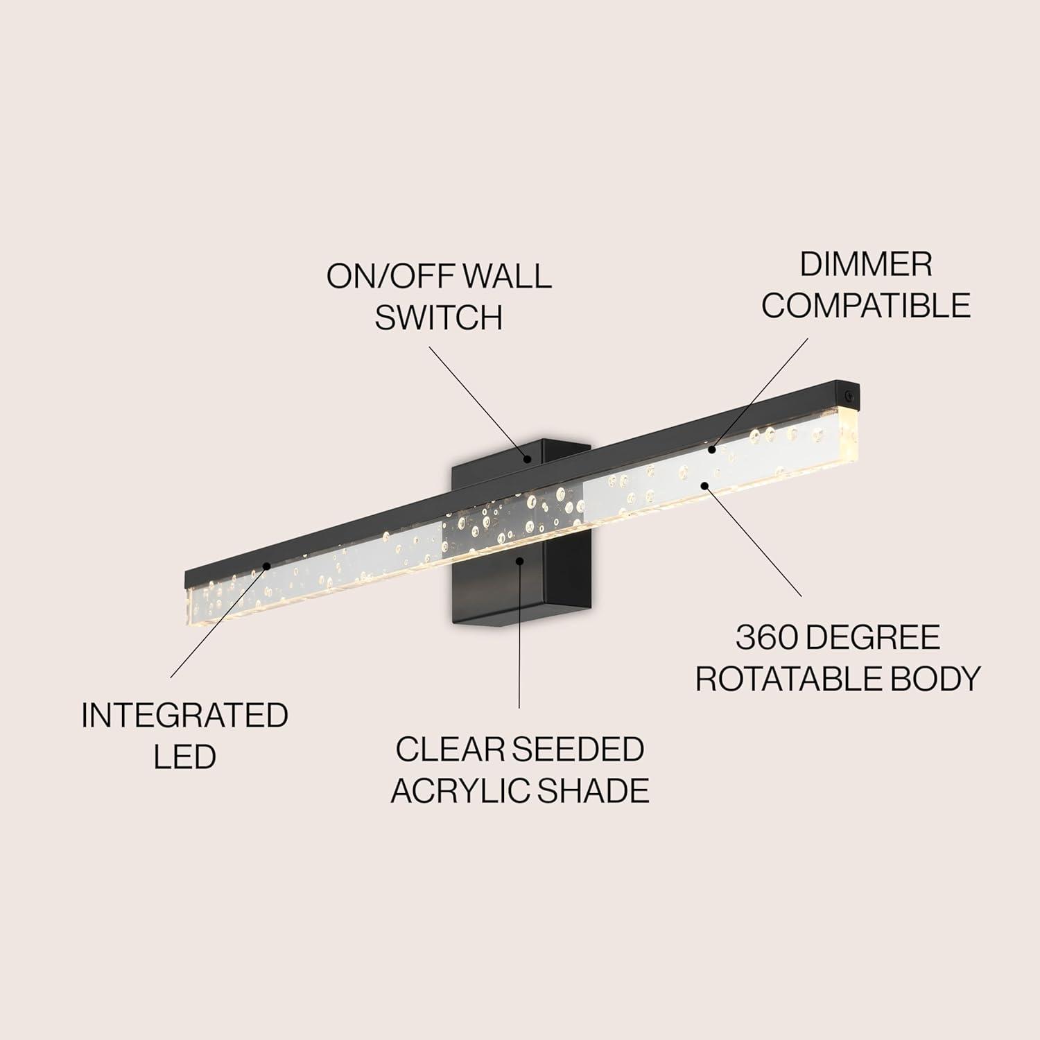 JONATHAN Y JYL7128A Mario 22″ 1-Light Modern Contemporary 360-Degree Rotatable Iron/Seeded Acrylic Integrated LED Vanity Light Industrial, Minimalist, French Country Mirror Cabinet, Black/Clear(Black/Clear)