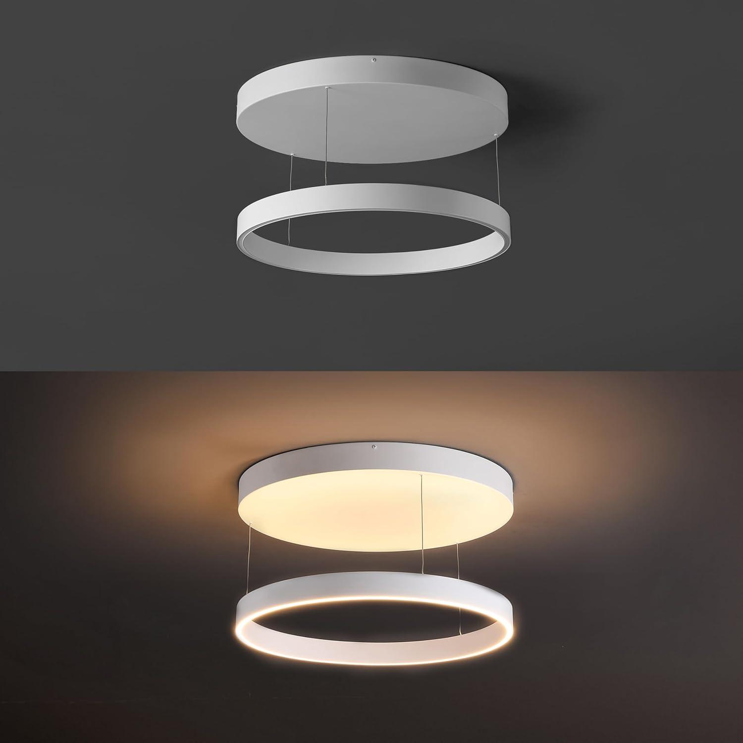 JONATHAN Y JYL7151A Jense 23.75″ Minimalist Modern Metal Adjustable Dimmable Ring LED Pendant, Black for Bedroom, Living Room, Dining Room(White)