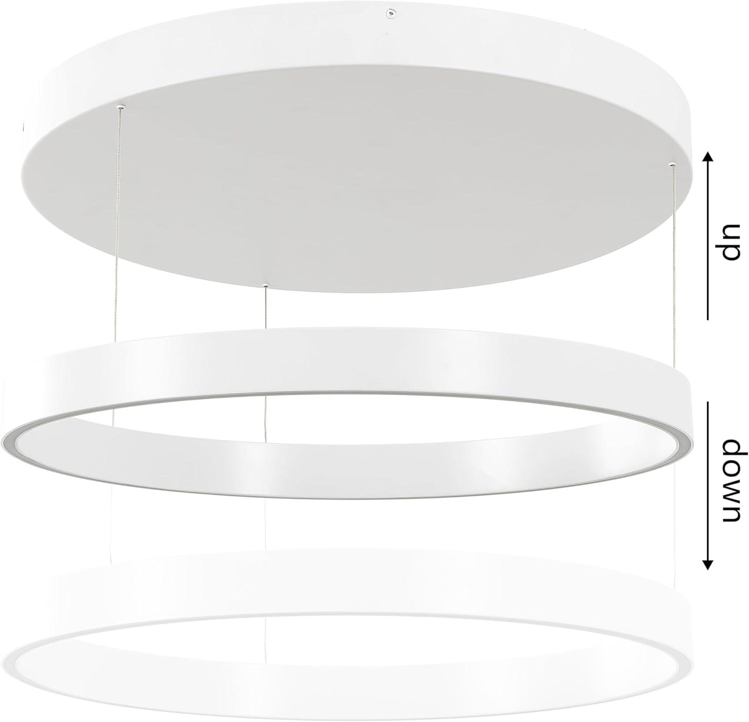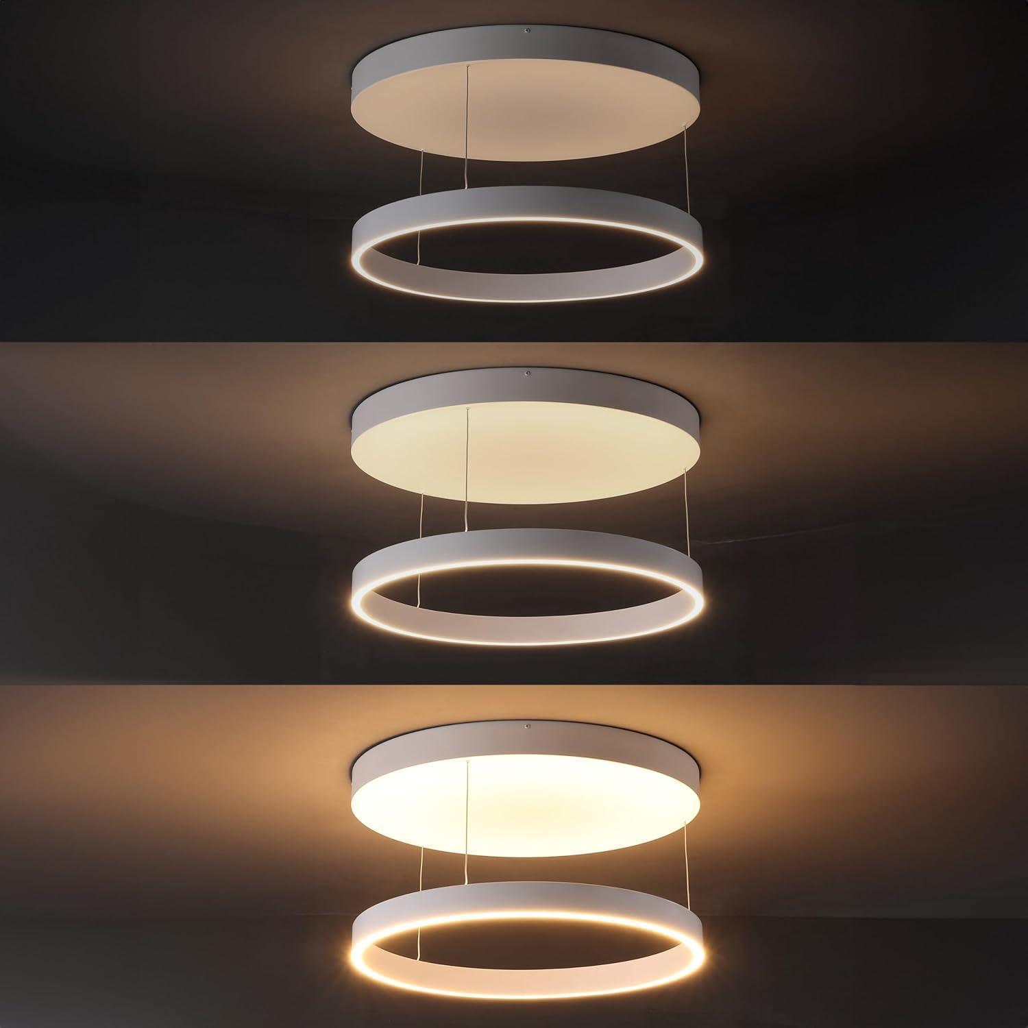 Our minimalist, integrated LED ring pendant features an up and down light to create the perfect ceiling fixture. Suspended by three cables, the light ring adjusts from flush mount to hanging pendant with an easy downward pull. Flood the room with ambient, warm light or use the dimmable LEDs for mood lighting in the living room, dining room, bedroom or home office.