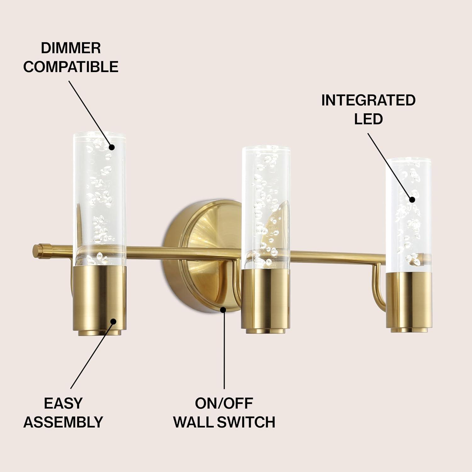 JONATHAN Y JYL7224B Bolha 18″ 3-Light Minimalist Modern Integrated LED Vanity Light,Classic Contemporary Glam 4000K 15W Built-In For Kitchen,Hallway,Bathroom,Commercial Office, Living Room, Brass Gold(Brass Gold)