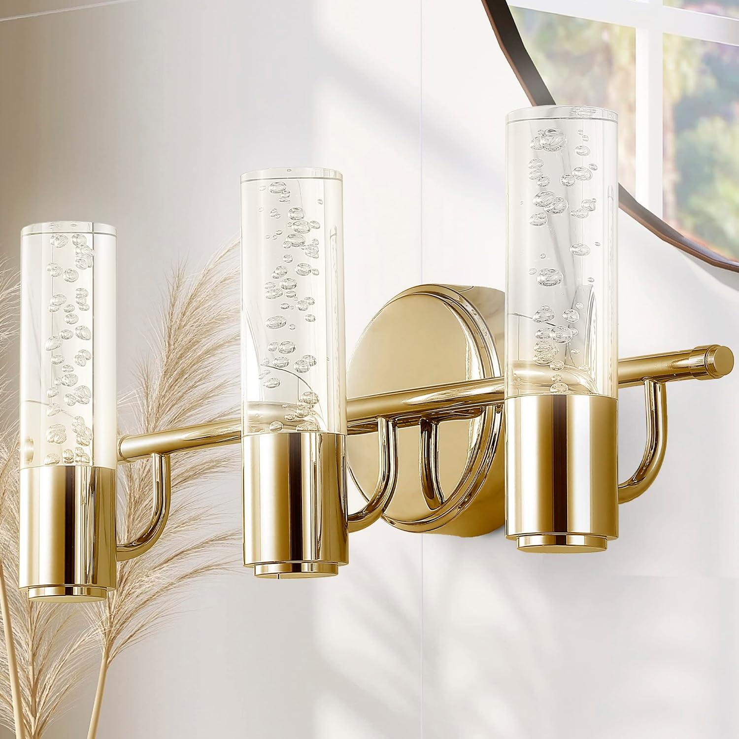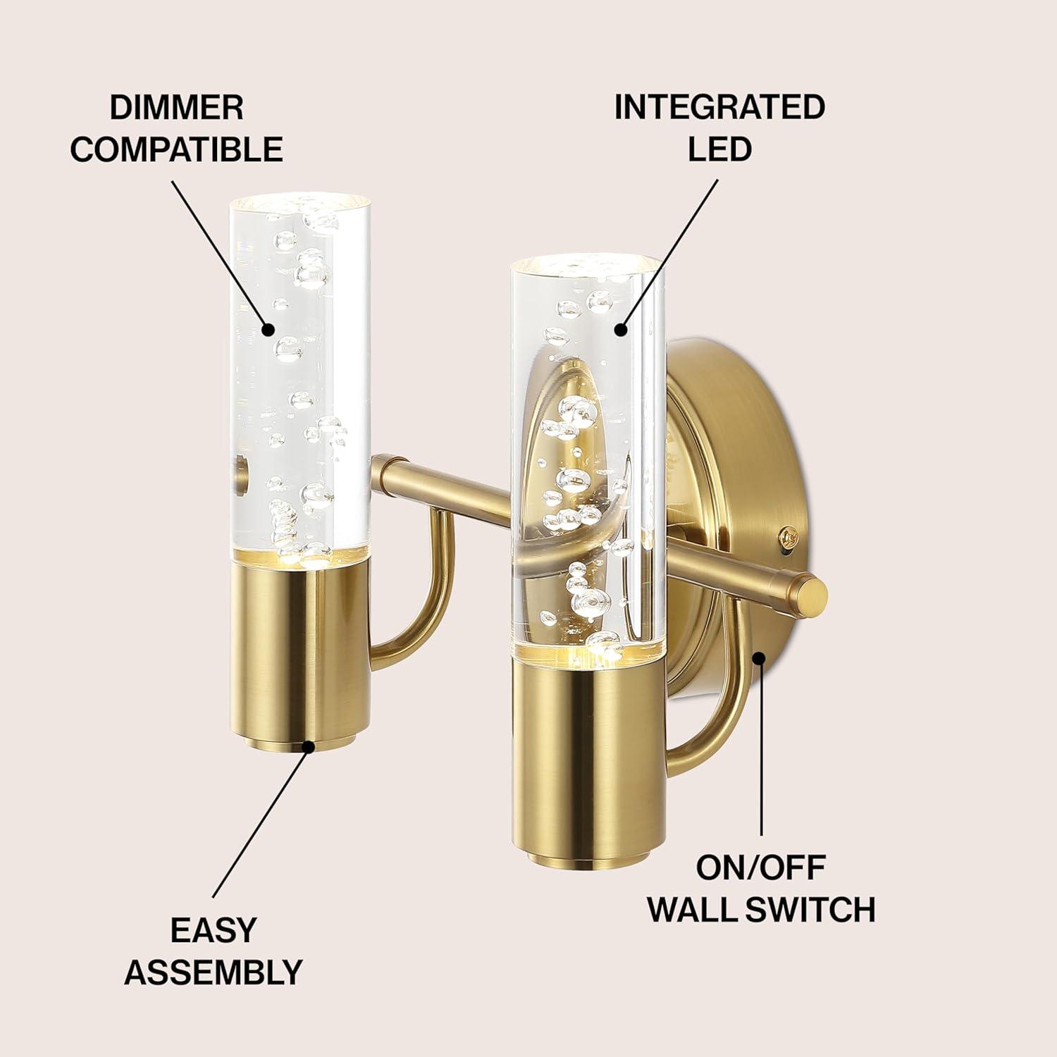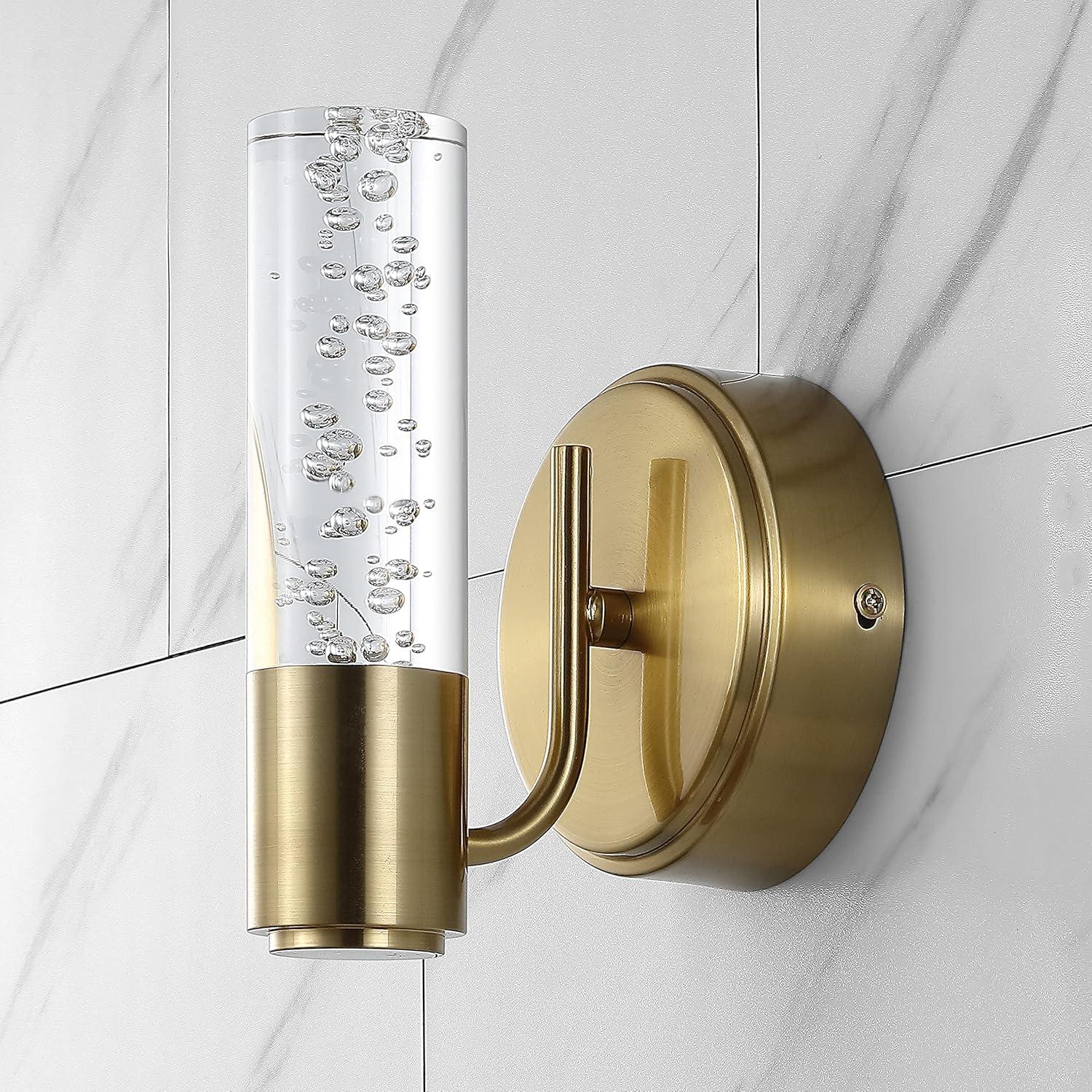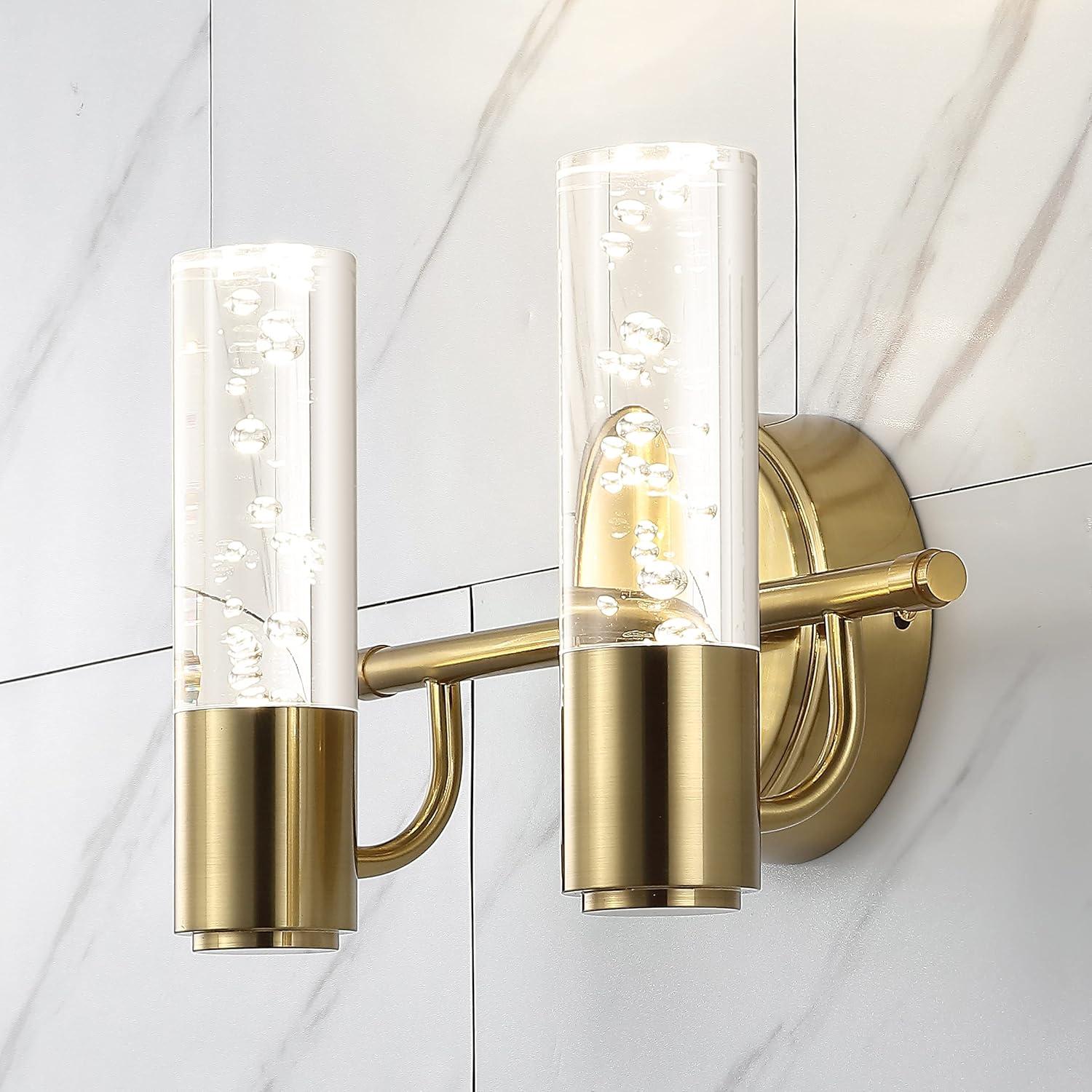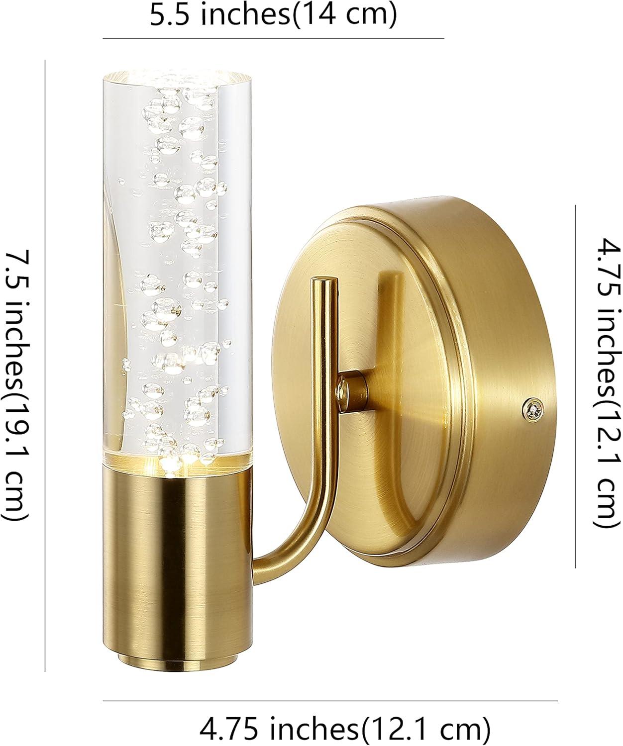 Add warmth and sparkle to your modern bath vanity with our Art Deco-inspired contemporary wall light. The brass-gold finish accentuates the clean lines, while clear bubble acrylic adds unexpected texture to the minimalist design. This versatile light is perfect for mid-century modern or contemporary spaces, adding a touch of sparkle to your bath vanity, kitchen, hallway or entry.