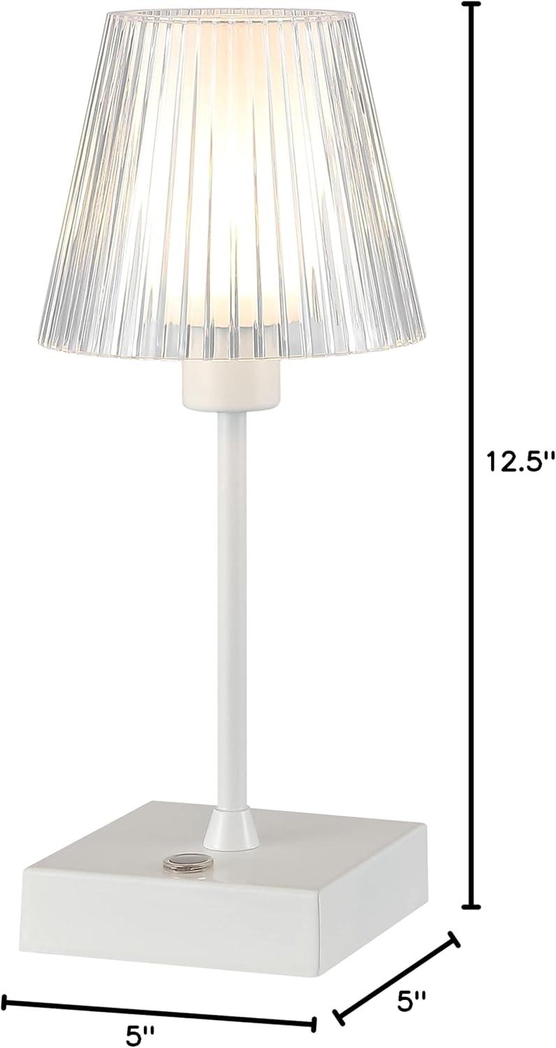 JONATHAN Y JYL7225C Oscar 12.5″ Modern Industrial Rechargeable/Cordless Portable Iron/Acrylic Integrated LED Table Lamp with Ribbed Shade Classic, Contemporary Bedside Desk Nightstand Lamp, Orange(White)