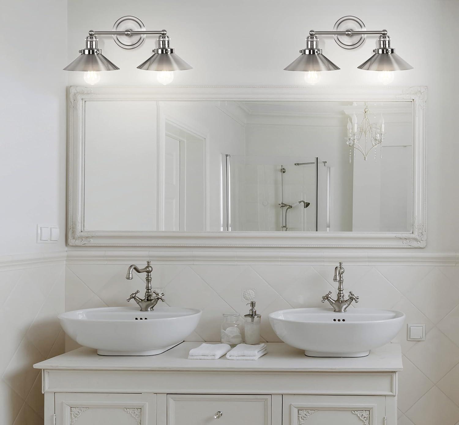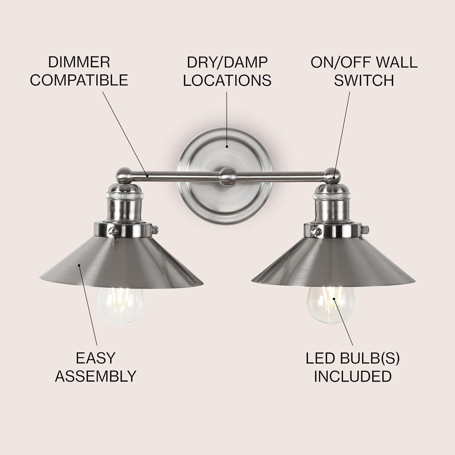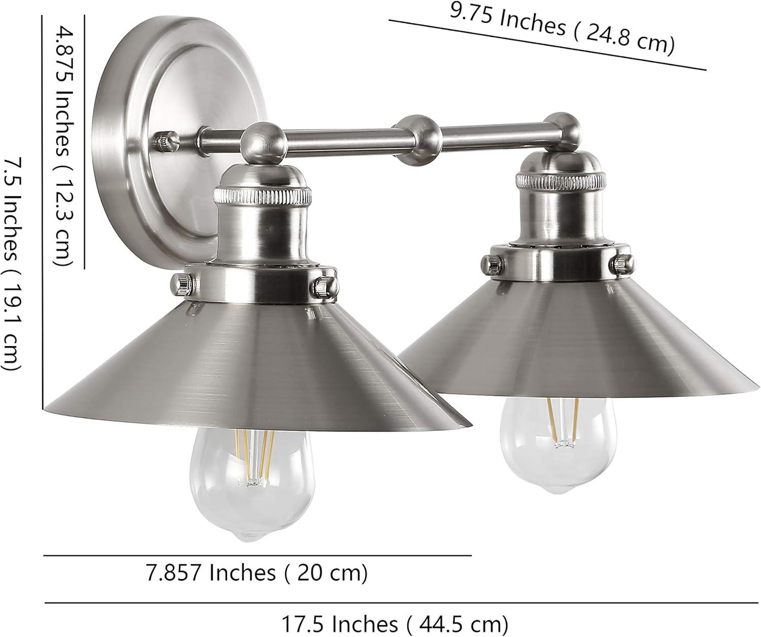 JONATHAN Y JYL7424A June 17.5″ 2-Light Metal Shade Farmhouse Sconce Contemporary Transitional 2200K Edison 25W Bulbs Included for Bedroom Living Room Bathroom, Vanity Lighting, Chrome(Nickel)