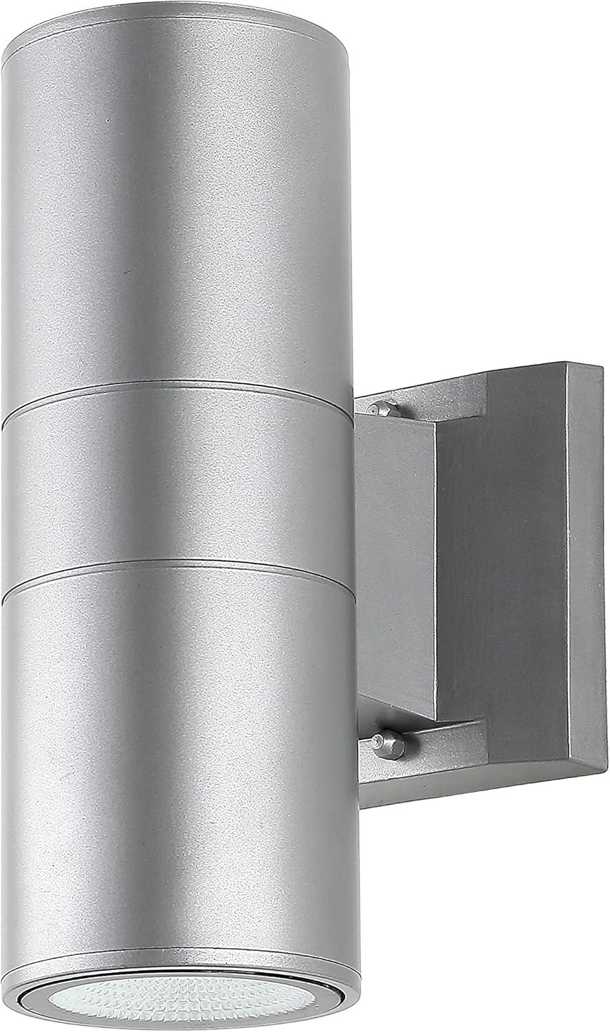 JONATHAN Y JYL7445B Duo 6″ 2-Light Modern Cylinder Outdoor Metal/Glass Integrated LED Sconce Contemporary Minimal Glam, Silver, 6 in