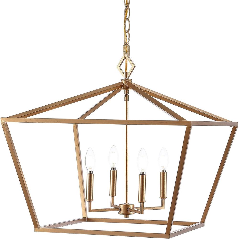 JONATHAN Y JYL7520C Gatsby 23″ 4-Light Adjustable Iron Rustic Glam LED Pendant Industrial Vintage Cottage Dimmable Dining Room Living Room Kitchen Foyer Bedroom Hallway, Gold(Gold)