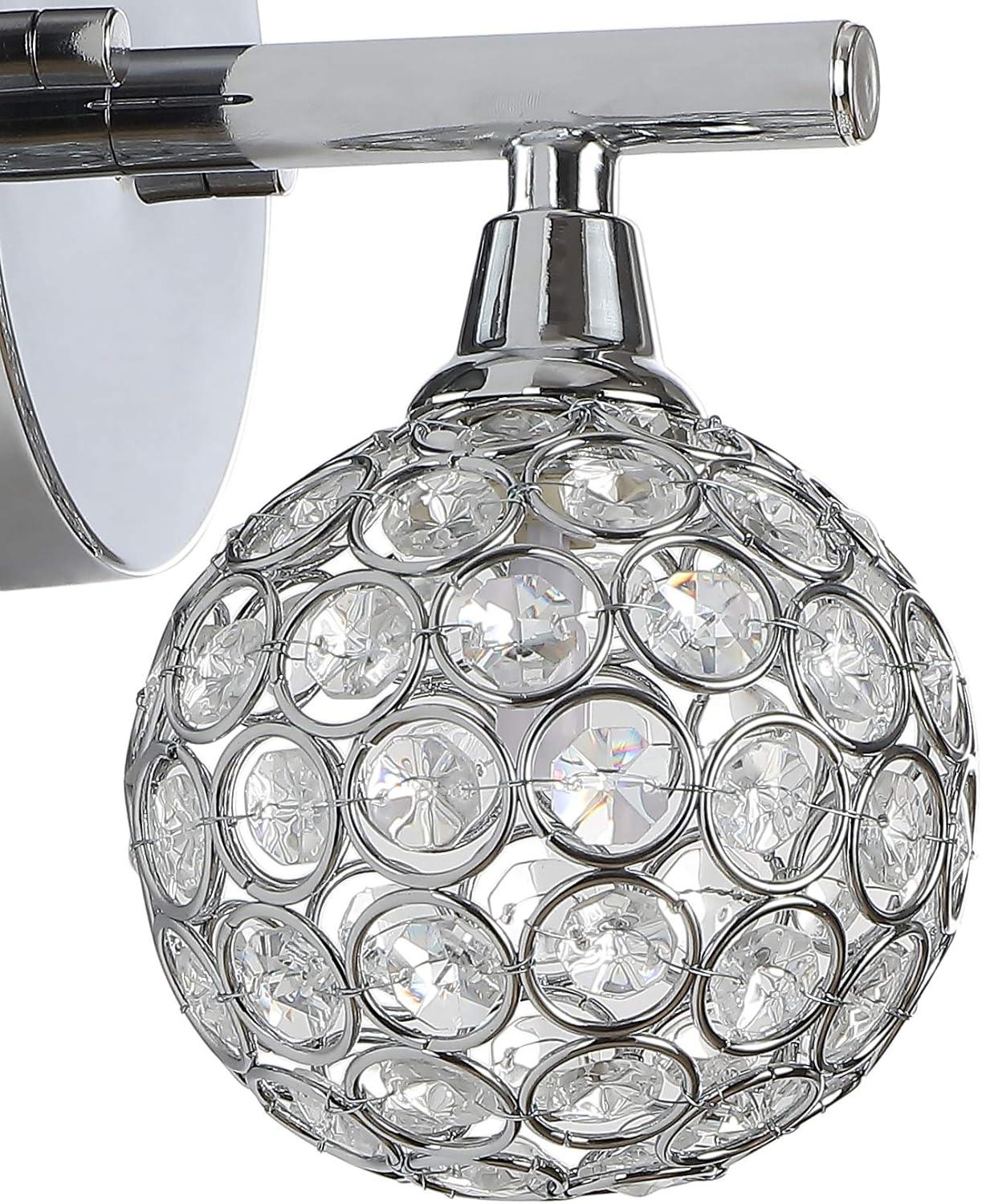 JONATHAN Y JYL7535A Maeve 13″ 2-Light Iron/Glass Contemporary Glam LED Vanity Light Glam Transitional Art Deco 2700K LED 2W Bulbs Included Bathroom Hallway Living Room Bedroom Mirror Cabinet, Chrome(1 Bulb)