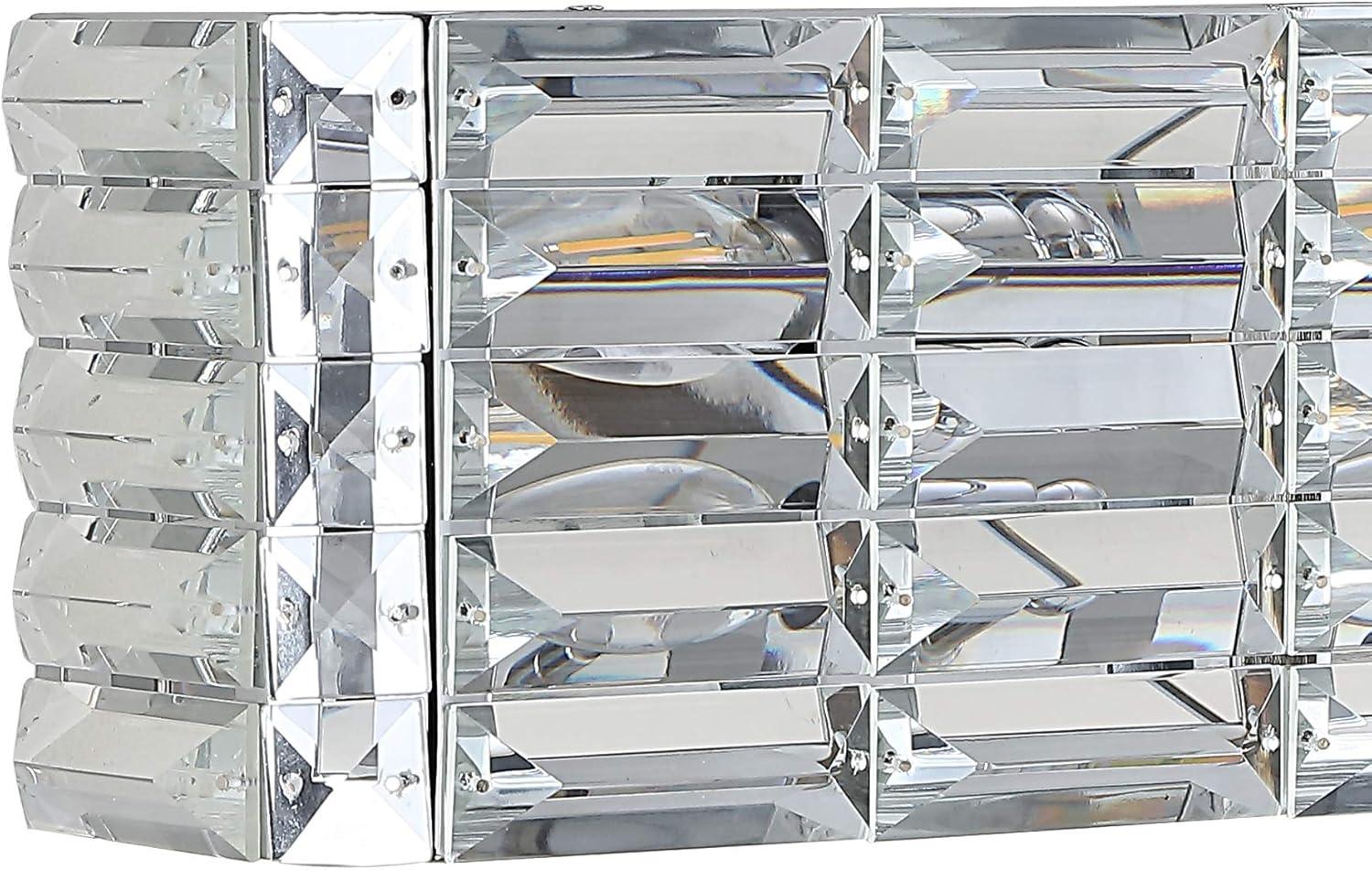 JONATHAN Y JYL7540A Evelyn Crystal Rectangle 24.25″ 3-Light Iron/Crystal Glam Modern LED Vanity Light Classic 2700K LED 2W Bulbs Included Bathroom Hallway Living Room Bedroom Mirror Cabinet, Chrome(2-Light)