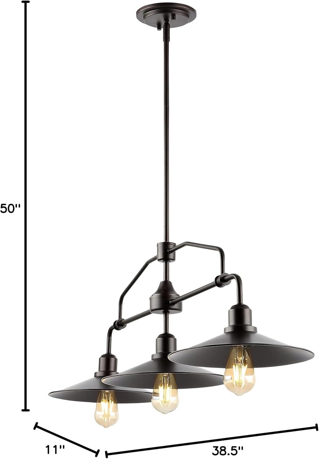 JONATHAN Y JYL7593A Nathan 38.5″ 3-Light Industrial Farmhouse Iron Linear LED Pendant Coastal Contemporary Adjustable Dining Room Living Room Kitchen Island Foyer Bedroom, Oil Rubbed Bronze/Clear(38.5″ 3 Light)
