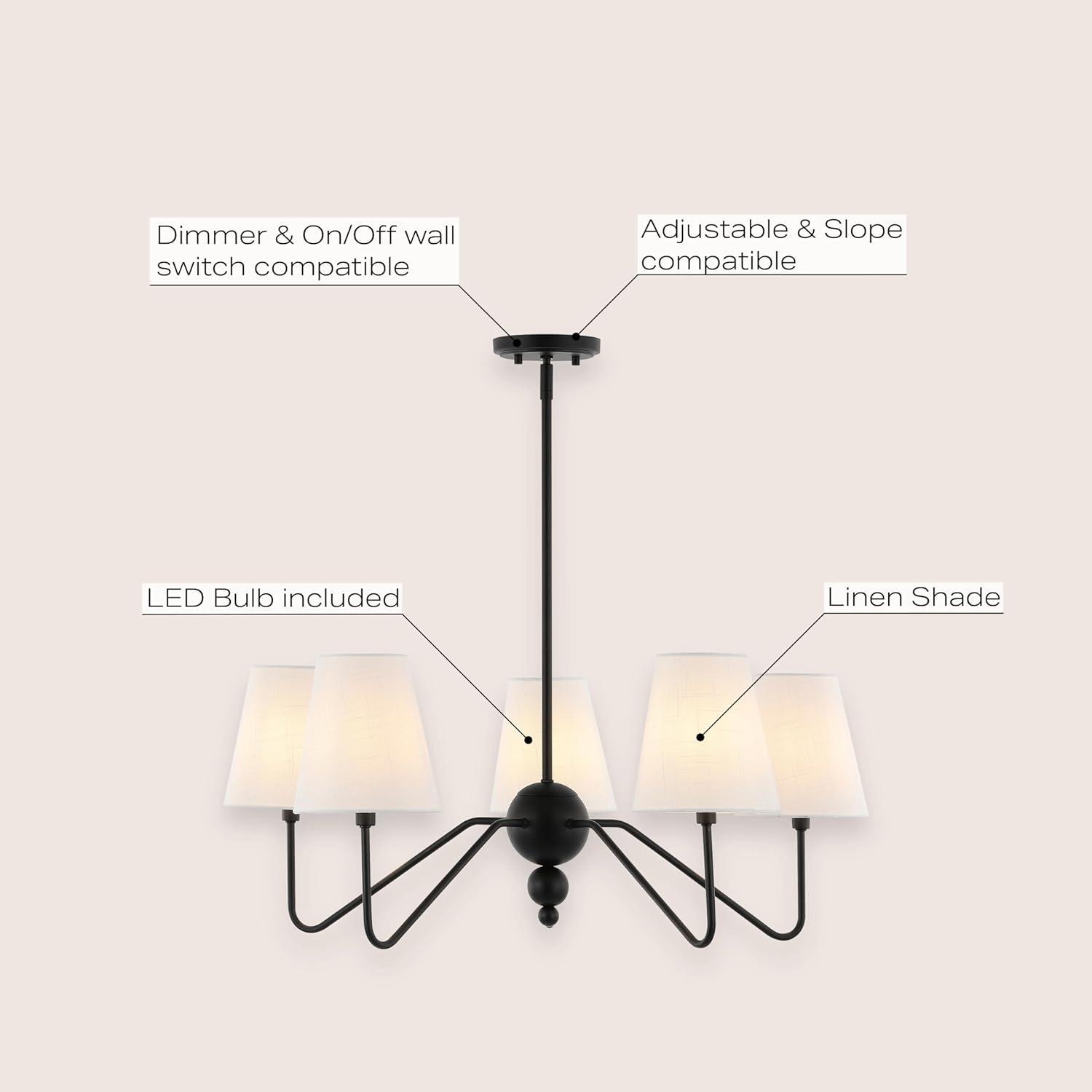 JONATHAN Y JYL7912A Skylar 32″ 5-Light Classic Minimalist Iron Inverted Gourd LED Chandelier, Black for Kitchen, Small Dining Room, Bedroom and Foyer