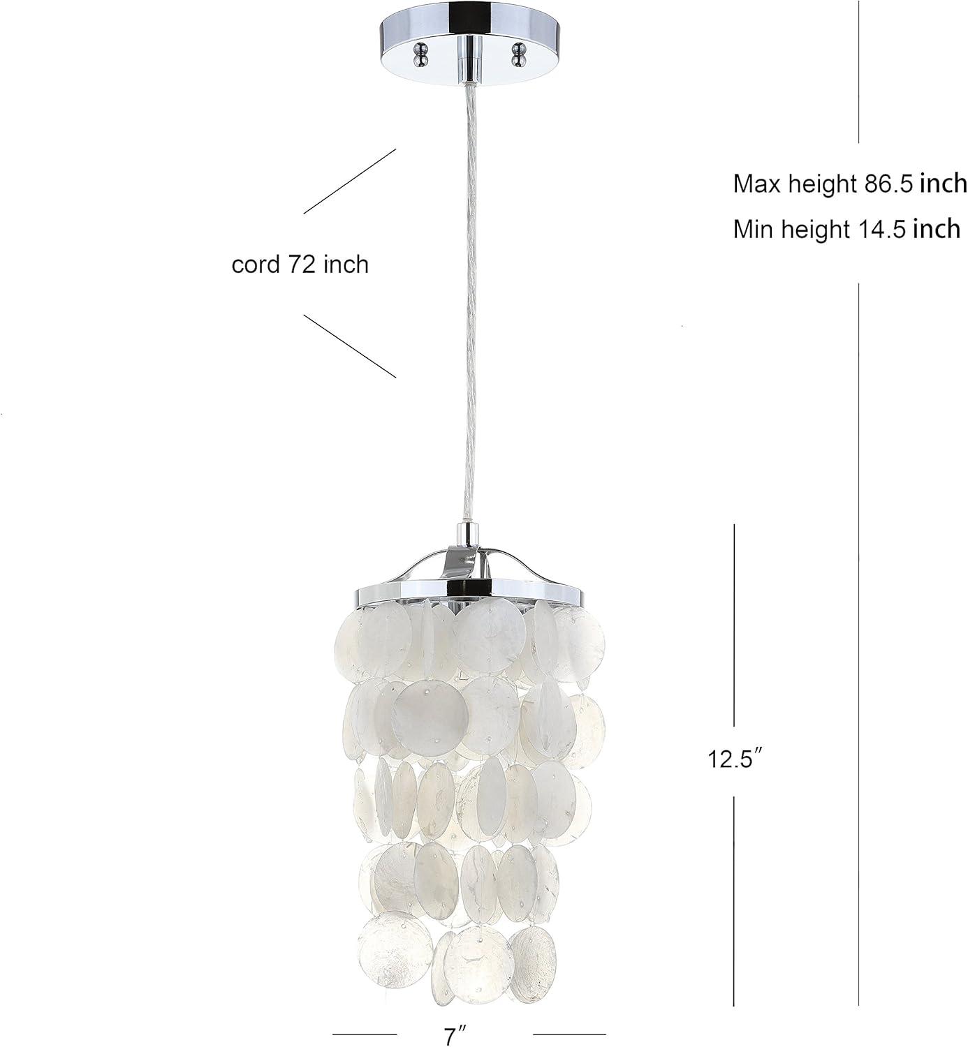 Accent a breakfast nook with the stylish charm of this shell chandelier. Featuring chrome hardware gleaming in contrast to the soft iridescence of round capiz shells, strands of varying lengths shade the light and offer shimmering flair. With an adjustable drop, this pendant can extend from 14.5 inch from the ceiling all the way to 86.5 inch for higher ceilings.