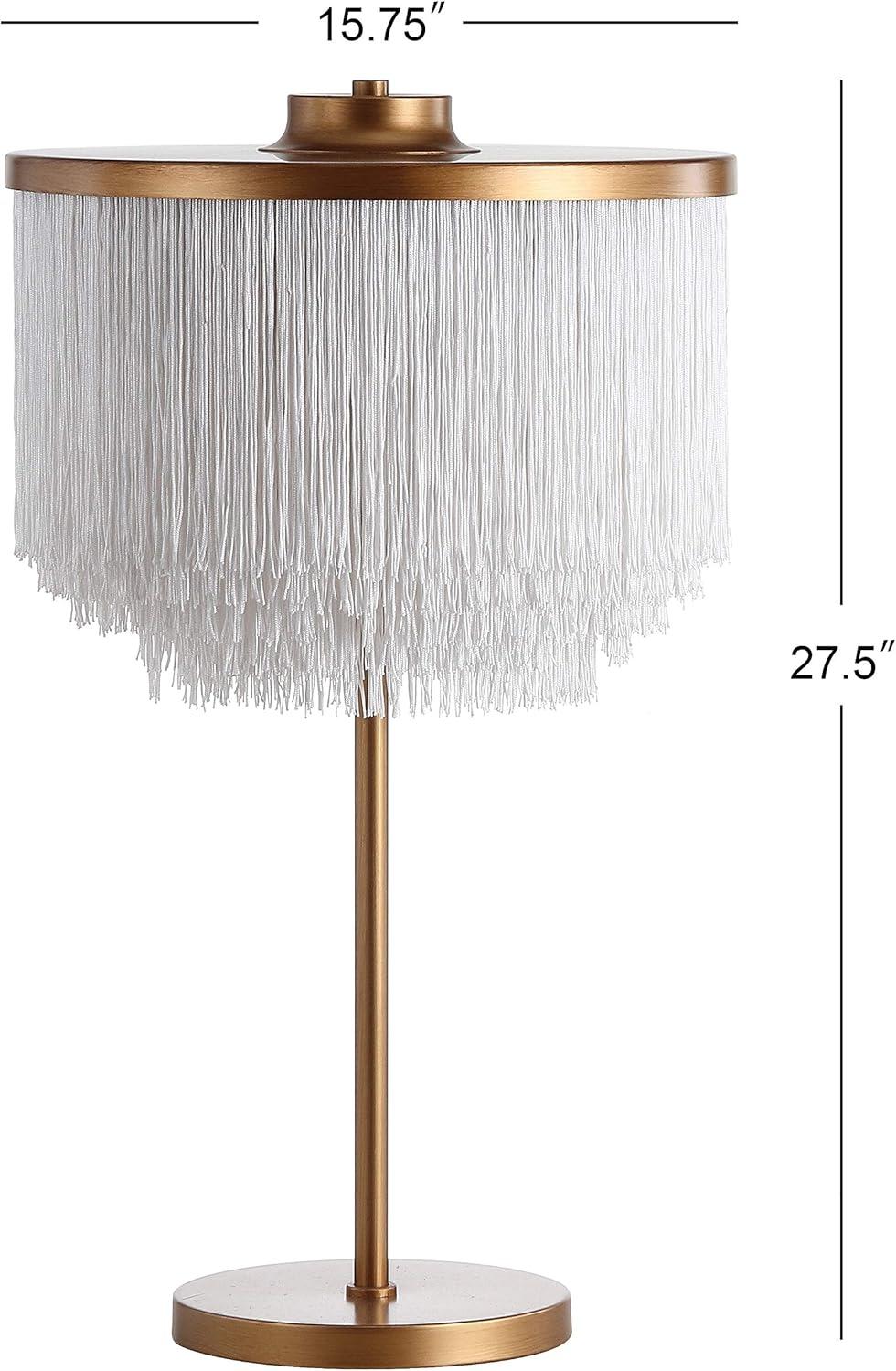 JONATHAN Y JYL9045A Coco 27.5″ Fringed/Metal LED Table Lamp Contemporary Transitional Bedside Desk Nightstand Lamp for Bedroom Living Room Office College Bookcase LED Bulbs Included, Gold