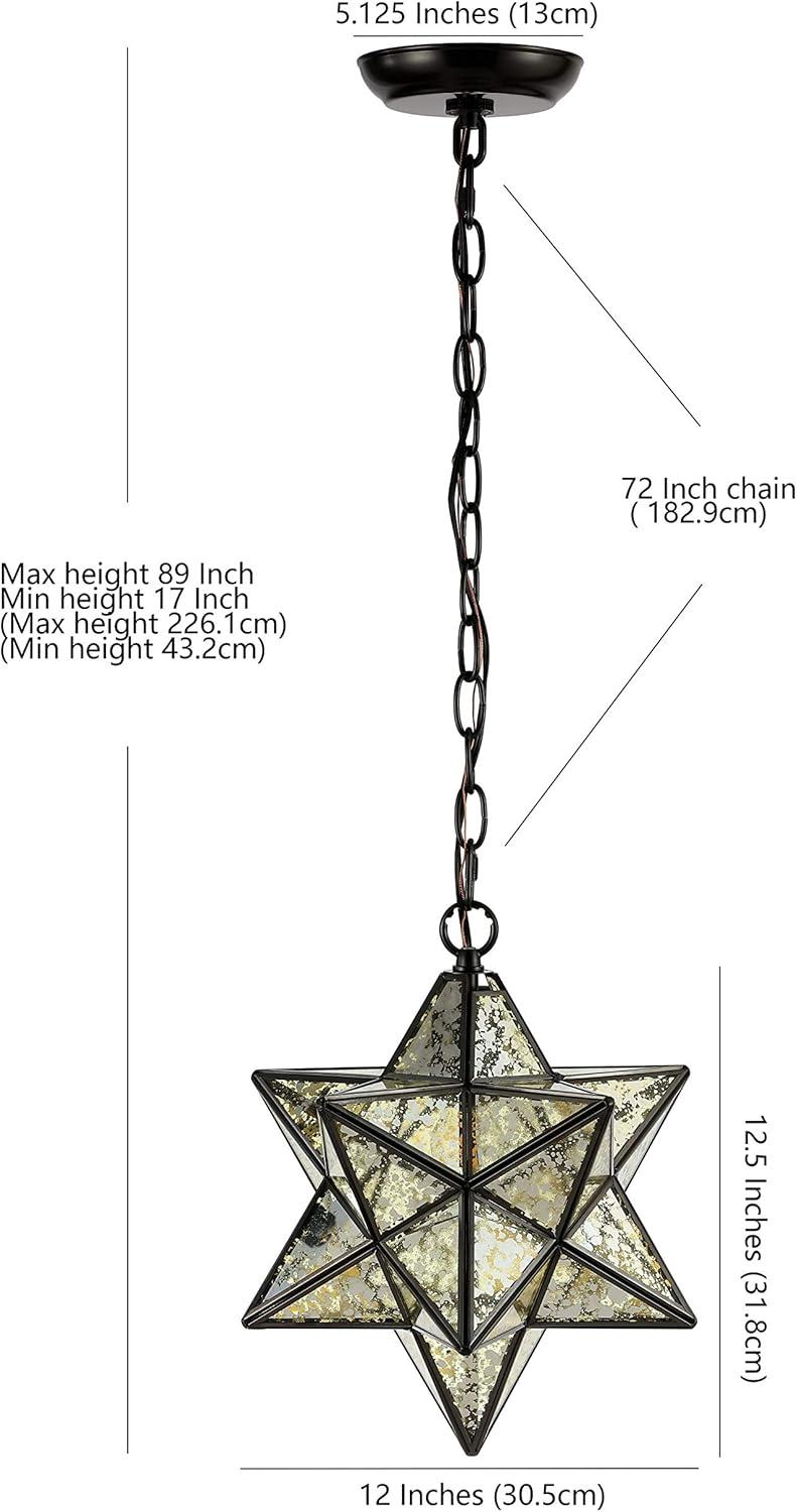 JONATHAN Y JYL9072A Stella 12″ Moravian Star Metal/Mercury Glass LED Pendant Glam Dimmable for Kitchen Hallway Bathroom Stairwell, Oil Rubbed Bronze(Oil-Rubbed Bronze)
