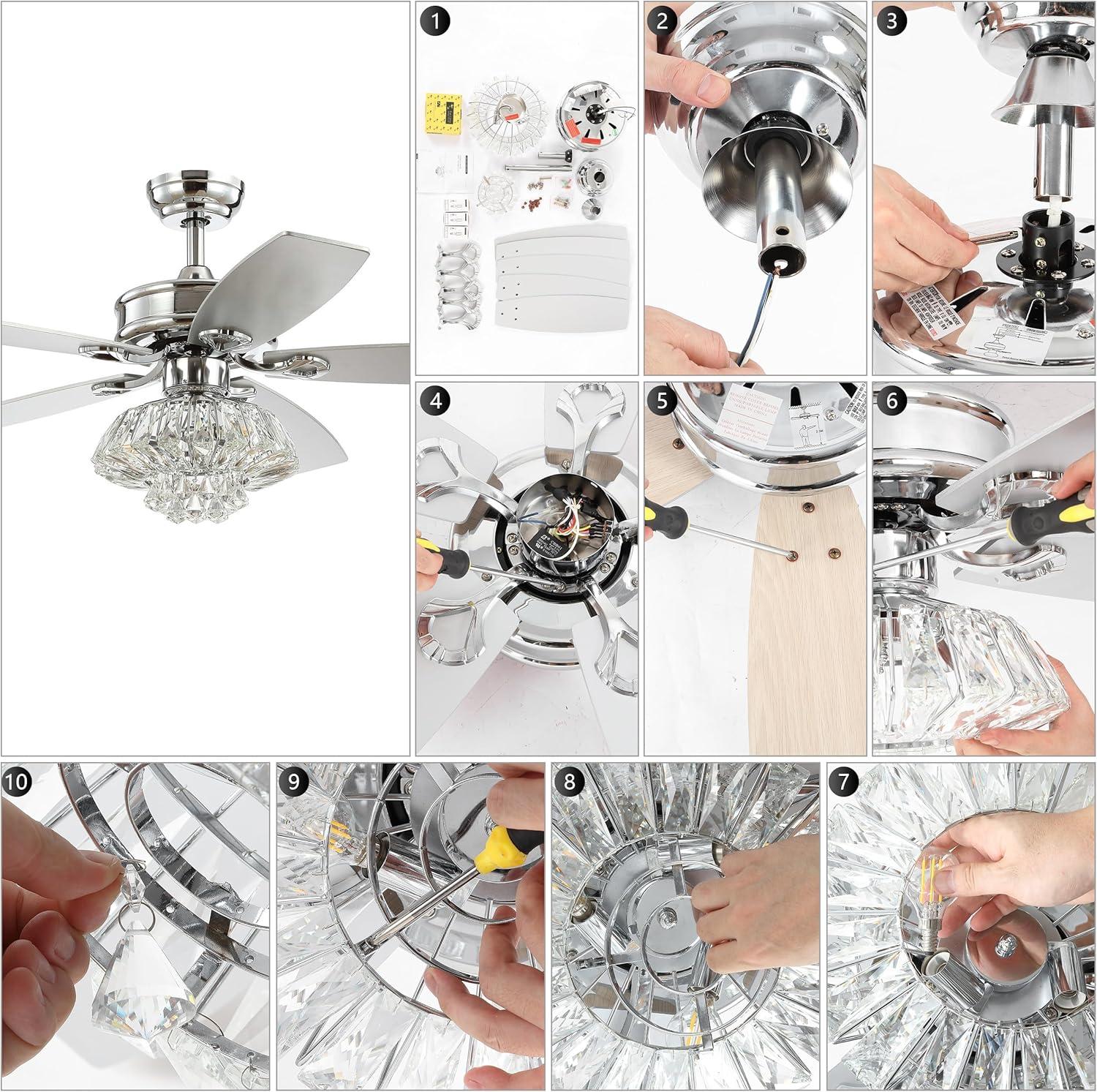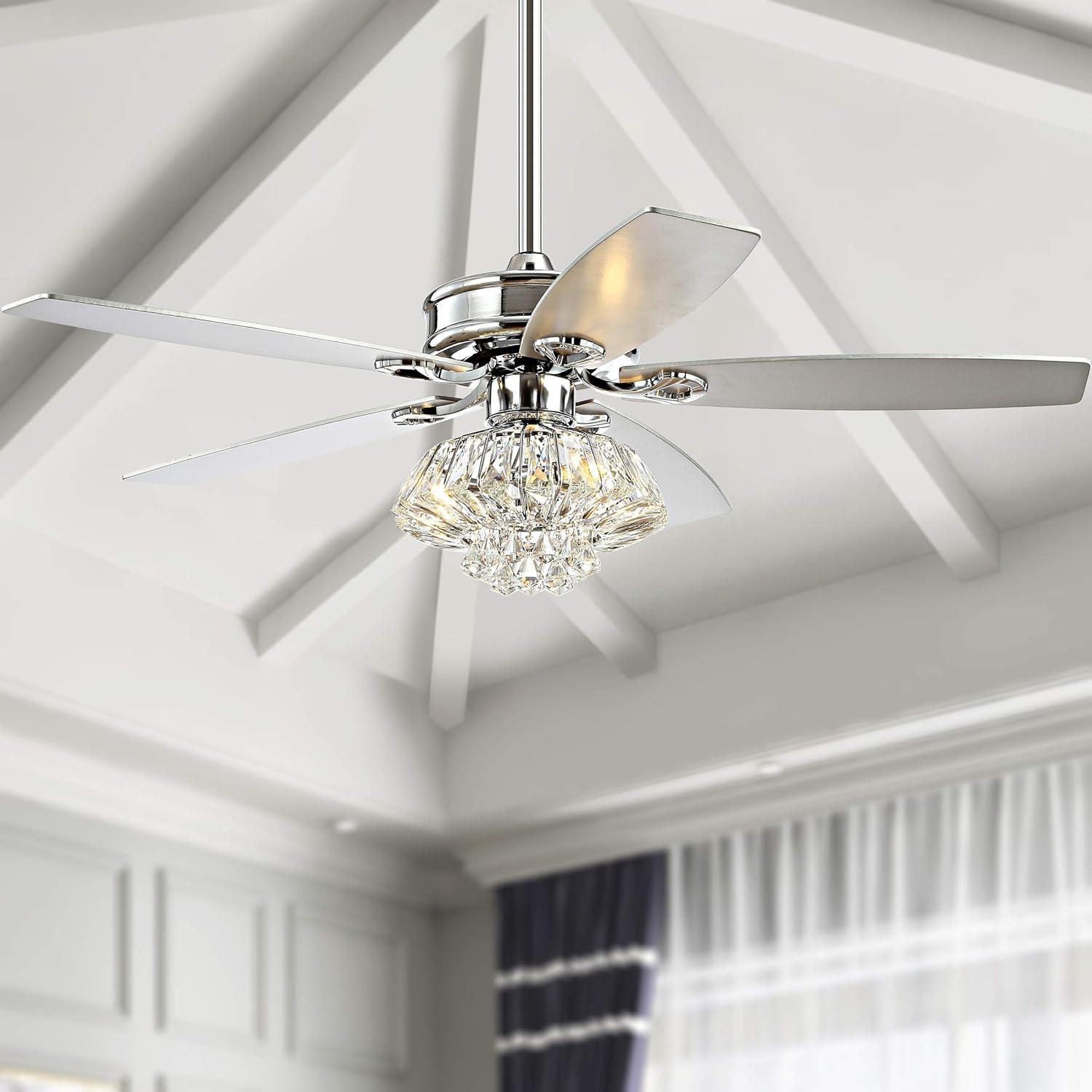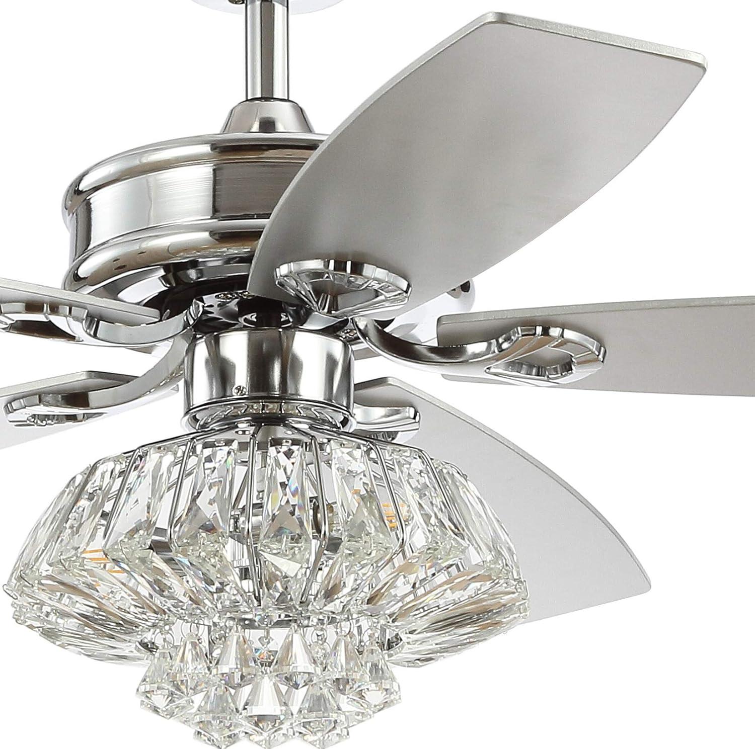 JONATHAN Y JYL9608A Kate 48″ 3-Light Glam Crystal Drum LED Ceiling Fan with Remote, Transitional, Glam, Classic, Modern, Contemporary, Elegant, Living Room, Family Room, Dining Room, Chrome