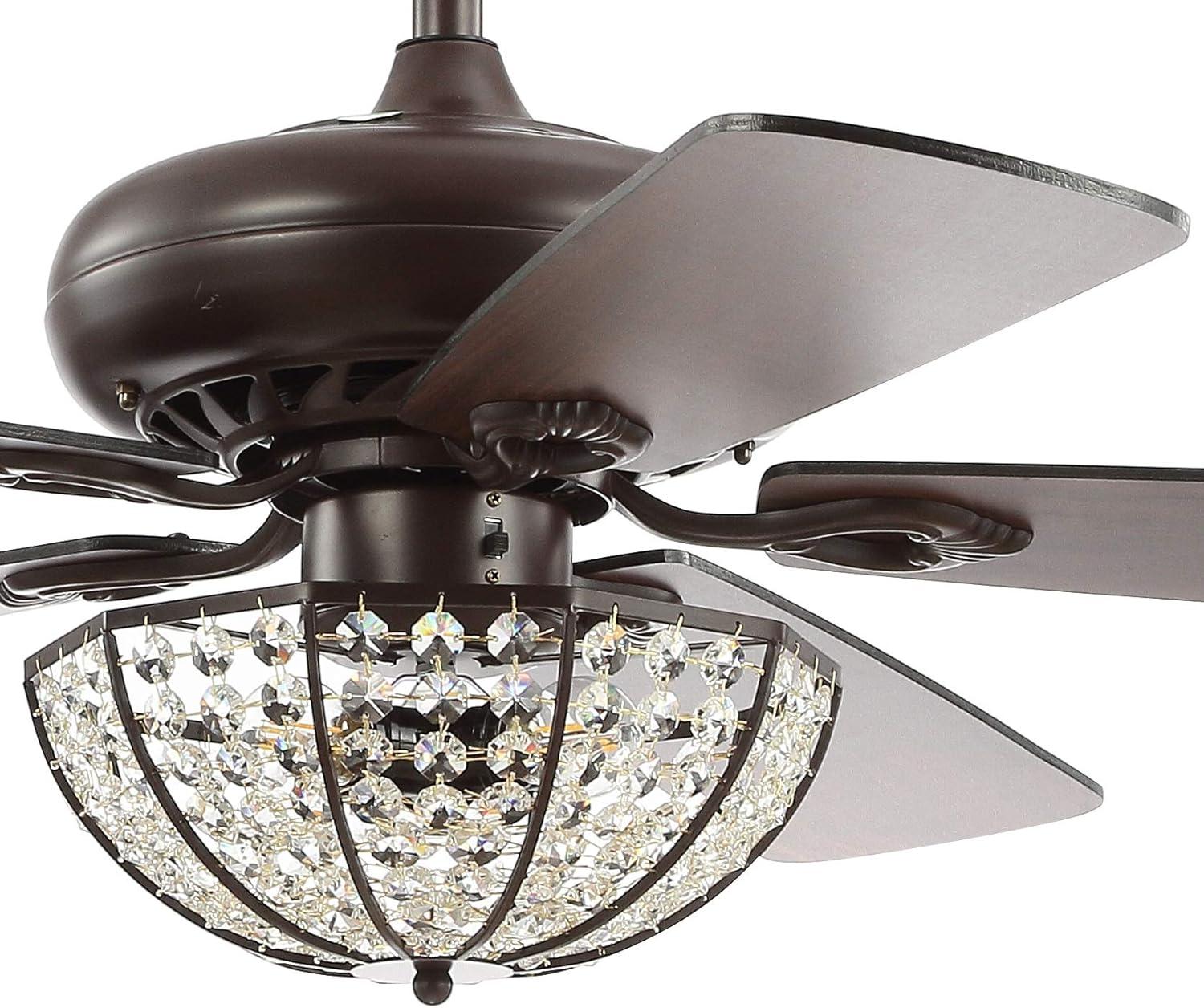 JONATHAN Y JYL9702A Joanna 52″ 3-Light Bronze Crystal LED Ceiling Fan with Remote, Classic, Glam, Traditional, Transitional, Office, Living Room, Family Room, Dining Room, Bedroom, Oil Rubbed Bronze