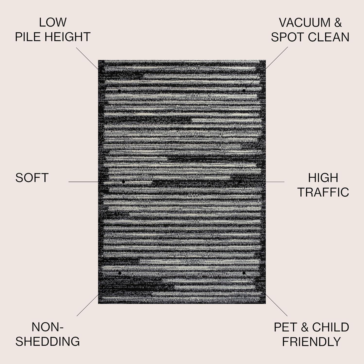 PET-FRIENDLY AND DURABLE: Durable for high-traffic areas, soft and comfortable area rug perfect for families with kids; Low-pile synthetic rug fibers won’t trap dirt and debris, so they’re pet-friendly and easy to clean
