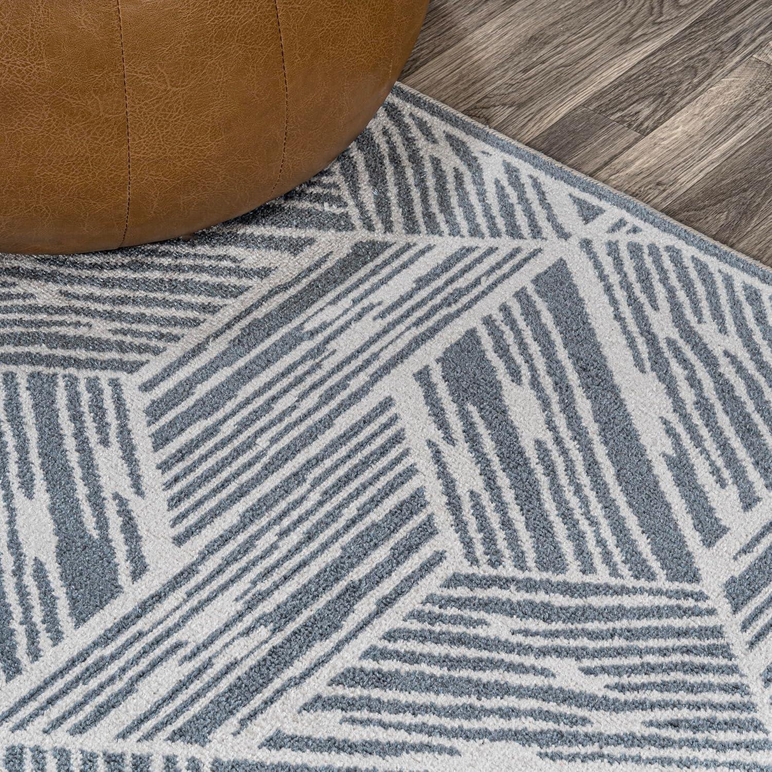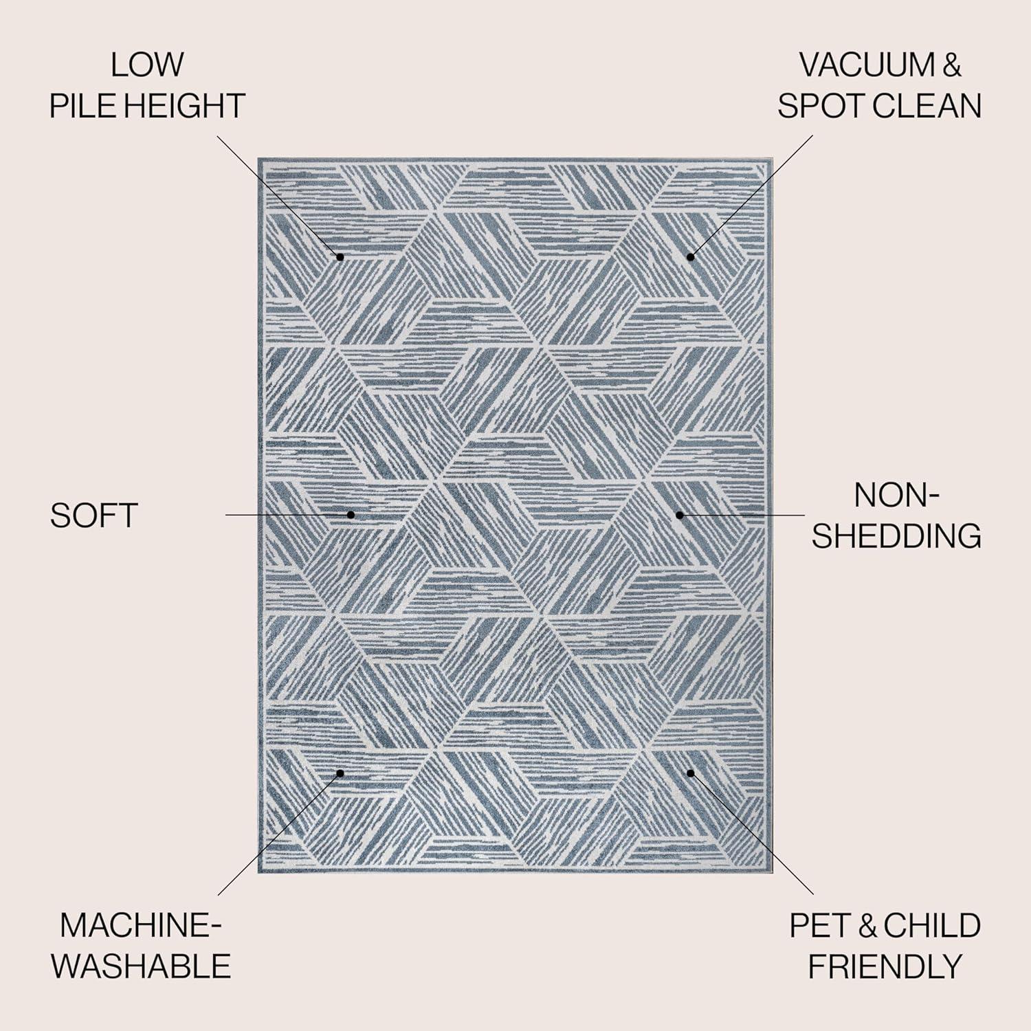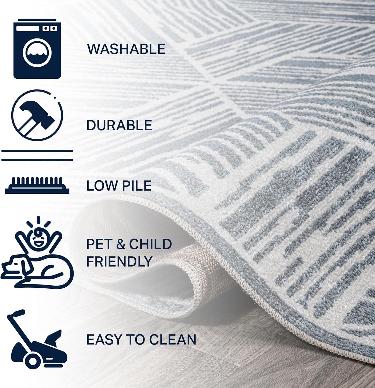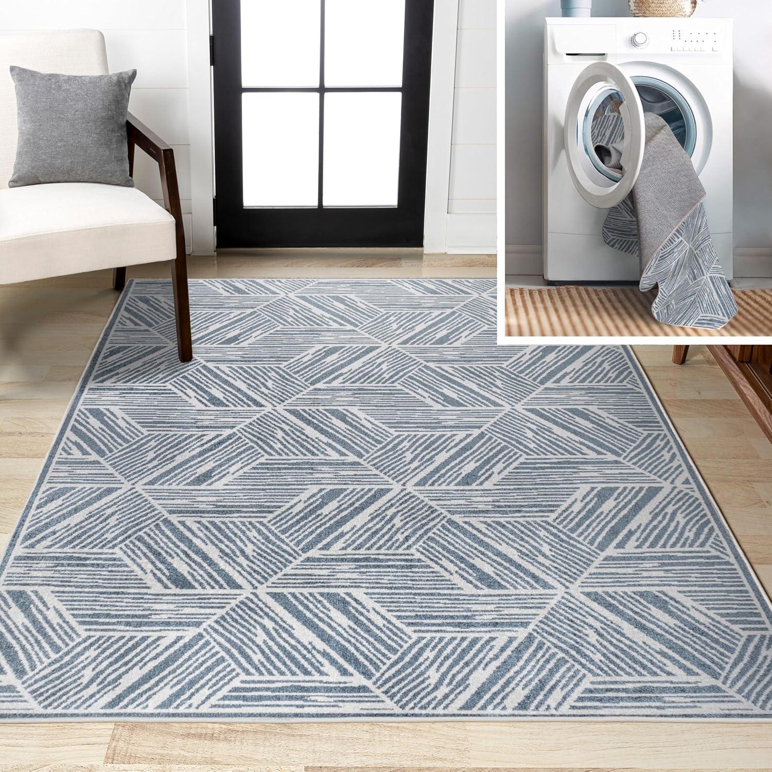 JONATHAN Y Machine Washable Indoor Area Rug 8X10 Dark Gray/Cream, Shutter Minimalist Striped Plaid for Living Room, Bedroom, Kitchen, Office, Easy-Cleaning, Pet-Friendly, Non-Shedding WSH305A-8(Blue/Cream)