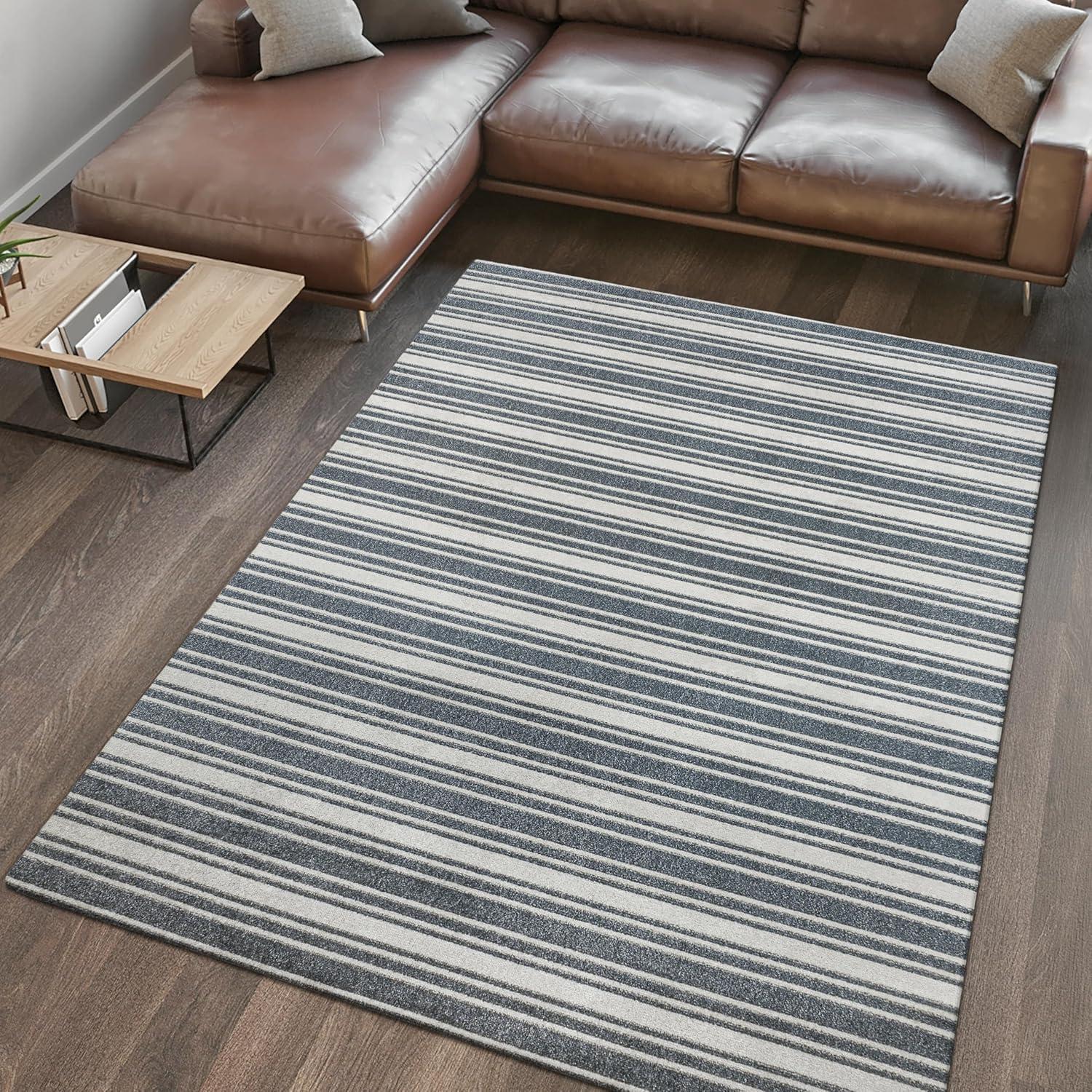 Our dark gray and cream striped rug is a contemporary and minimalist design