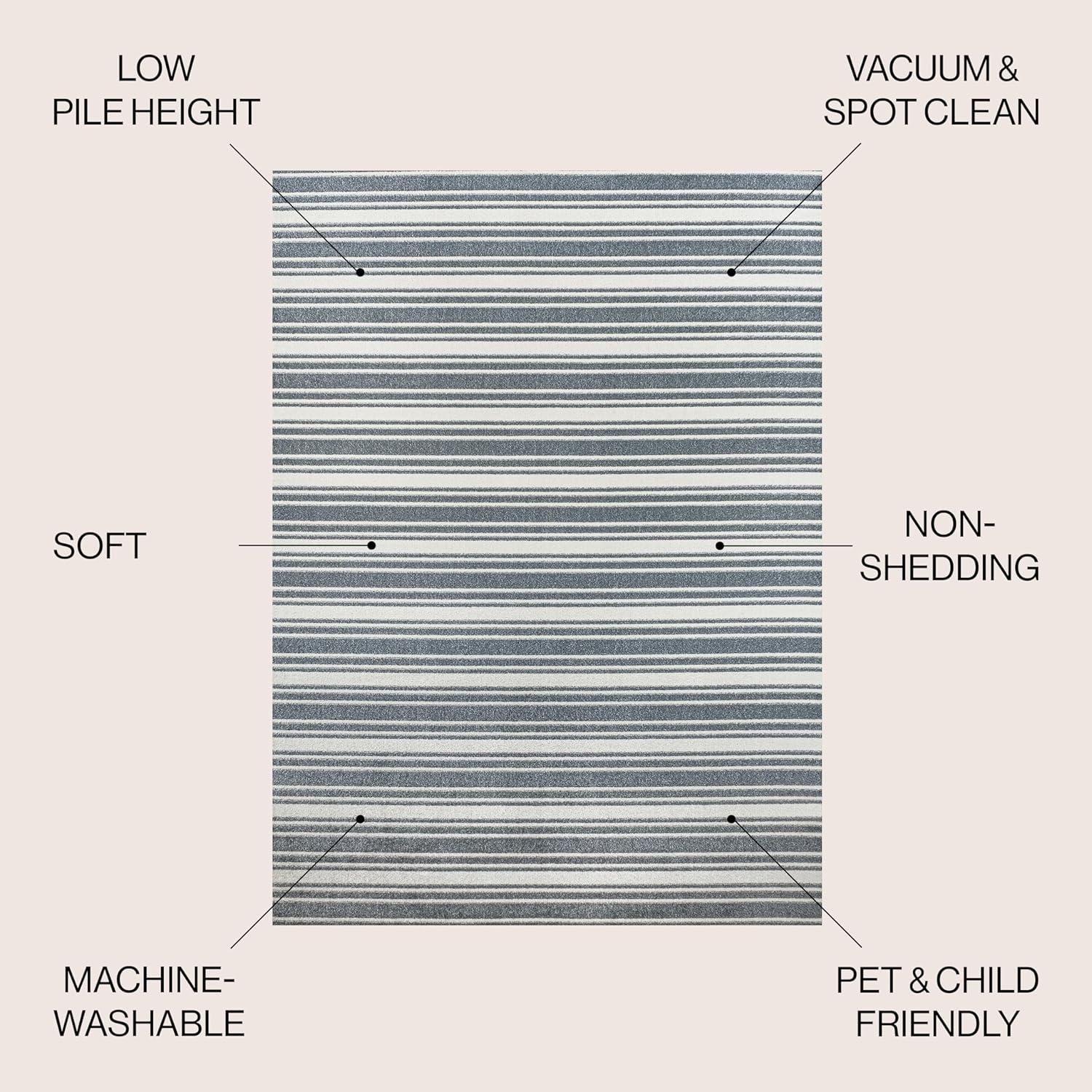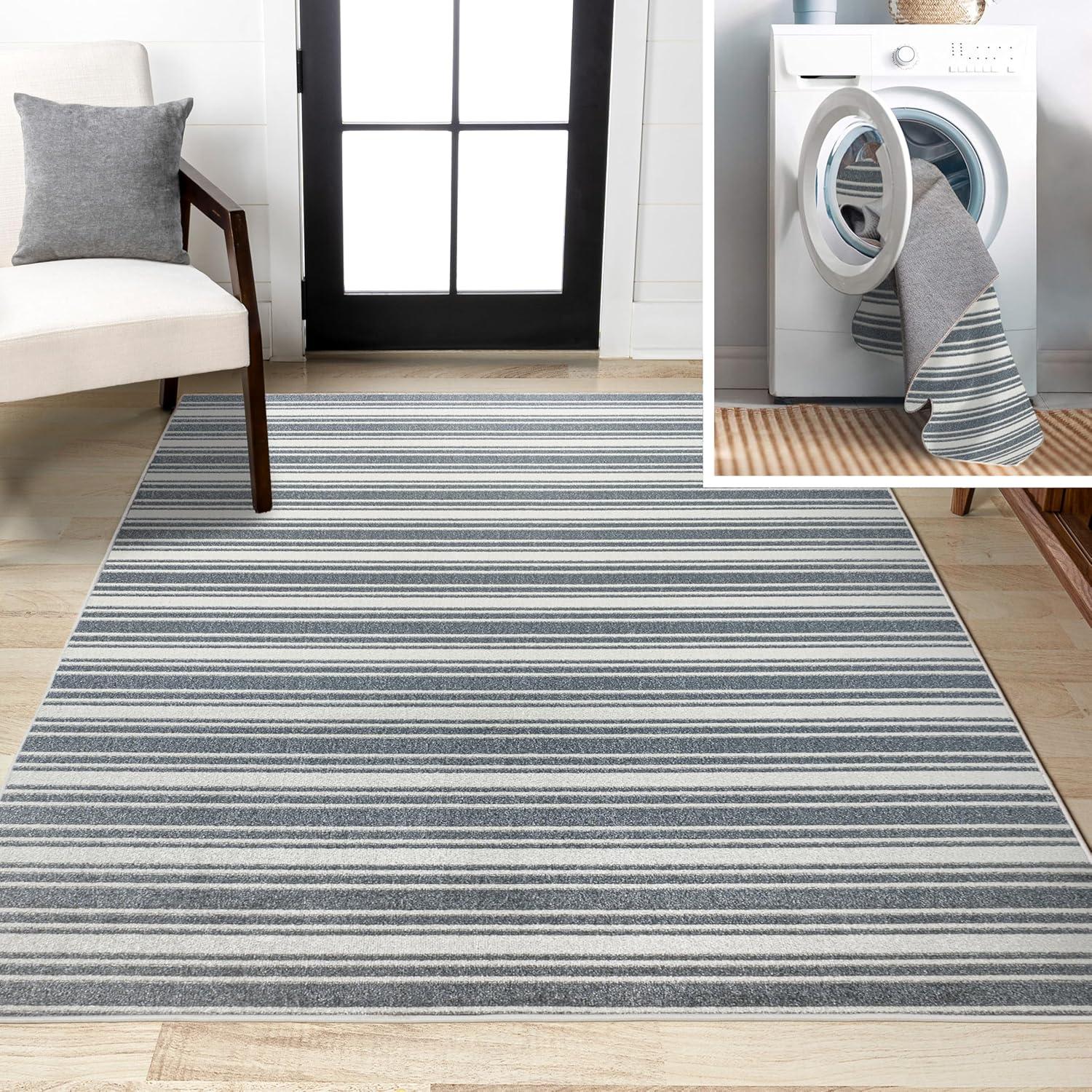 JONATHAN Y Machine Washable Indoor Area Rug 8X10 Dark Gray/Cream, Shutter Minimalist Striped Plaid for Living Room, Bedroom, Kitchen, Office, Easy-Cleaning, Pet-Friendly, Non-Shedding WSH305A-8(Cream/Dark Gray)